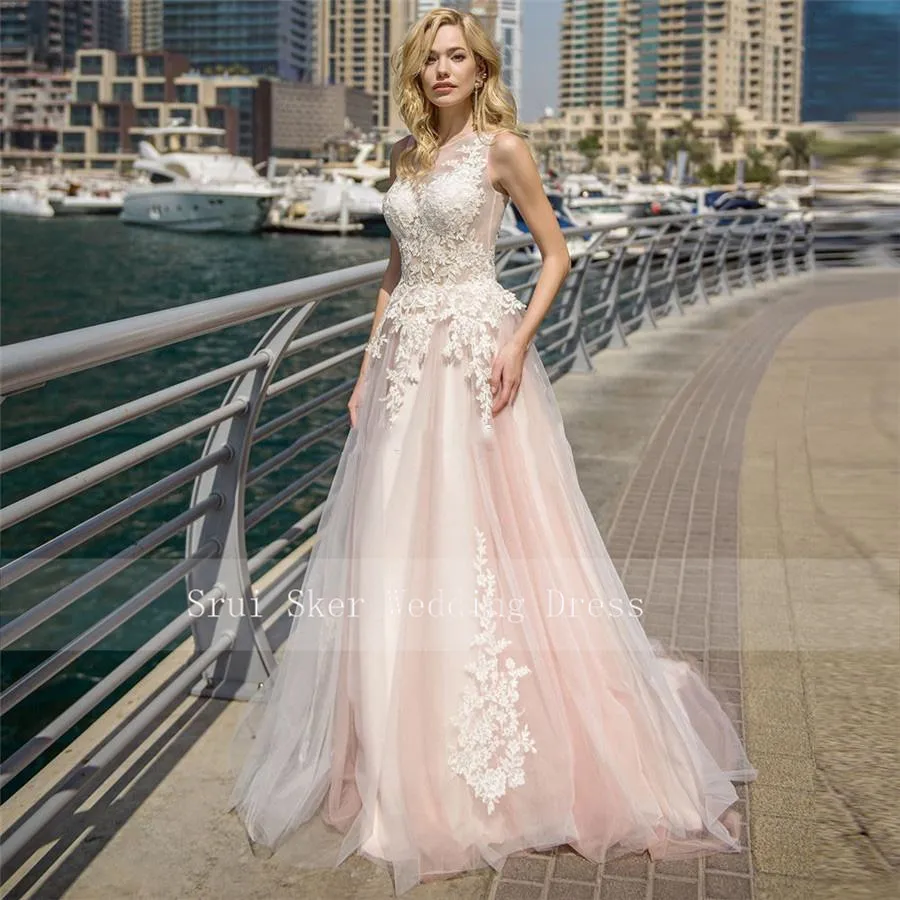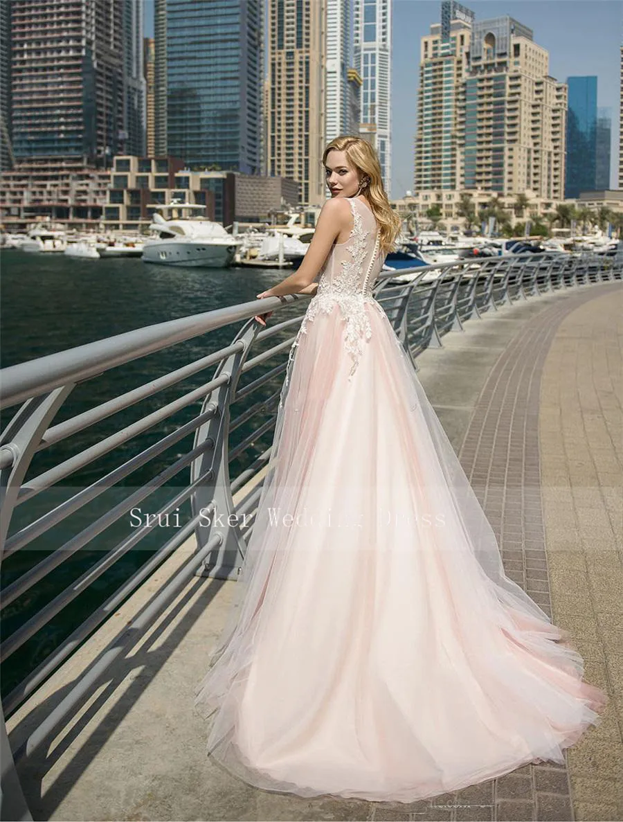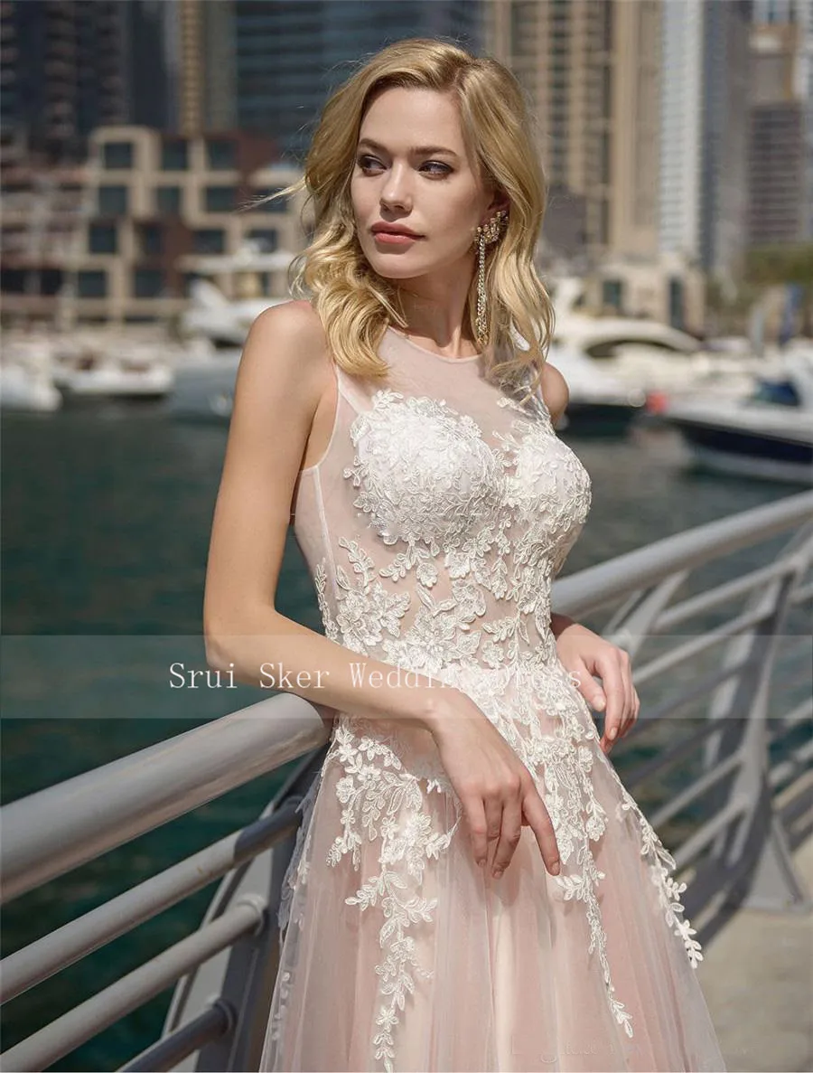 Прозрачный лиф с 3D кружевной аппликацией, розовое свадебное платье...