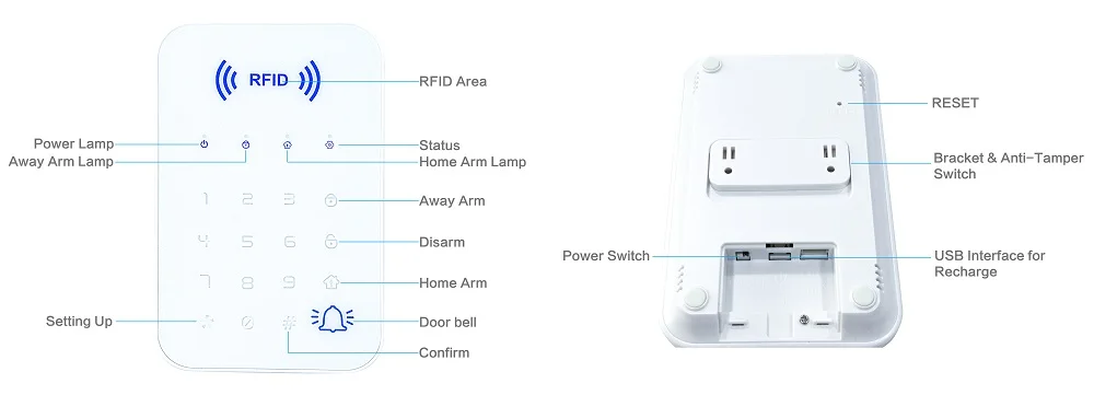 -- Поддержка 60 rfid-меток. Используйте r можно использовать rfid-карту для установки системы сигнализации Arm/Disarm