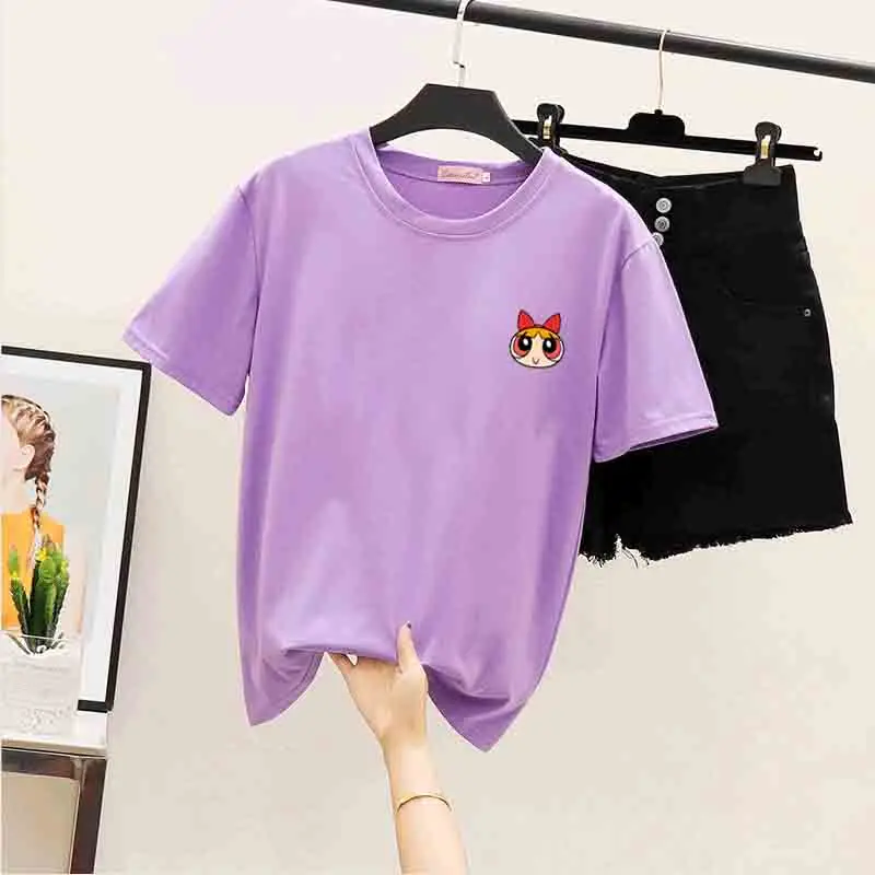 Женская хлопковая Футболка с мультяшным принтом, милые летние футболки в стиле kpop в стиле ольччан, Харадзюку с цветами, 2020