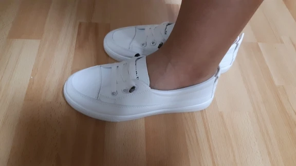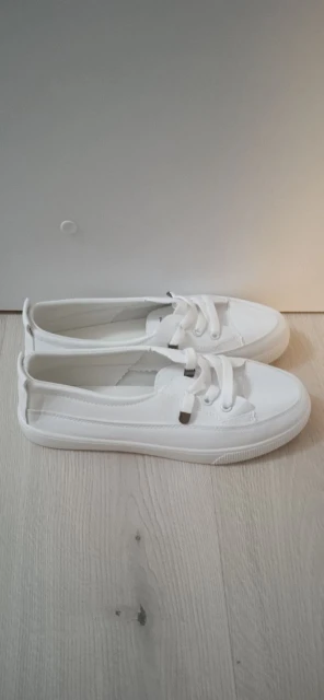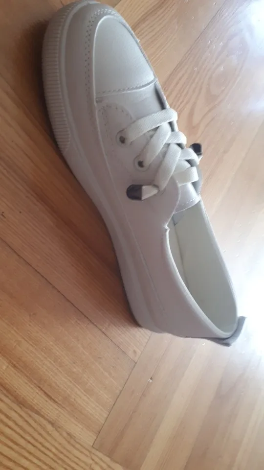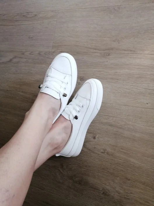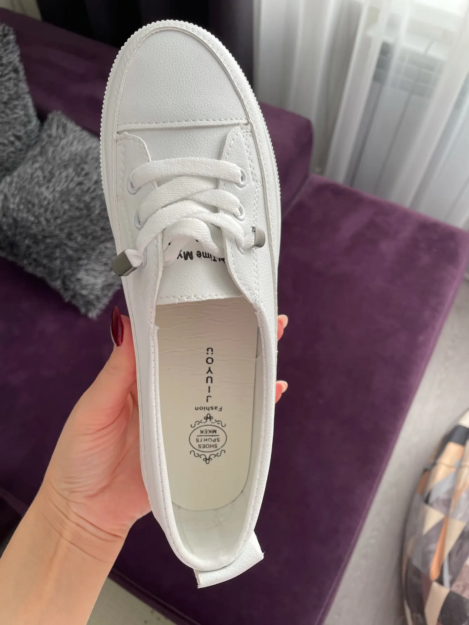На 36 размер заказала 7.5. Подошли. Подходят на широкую ногу. У меня узкая, пришлось утянуть шнурки. И носы были чуть помяты. Цвет не белый, а бледно бежевый. Оставила