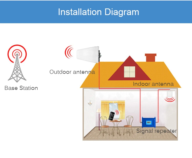 1. Наружная антенна получает хороший сигнал от сигнальной башни.2. Затем через кабель отправил сигнал на внутренний ретранслятор.3. Повторитель принимает и улучшает сигнал.4. После этого, тонкий сигнал переходит в внутреннюю антенну, через кабель к вашему мобильному телефону.