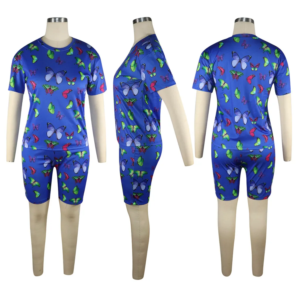 Женский спортивный костюм, повседневный комплект из двух предметов, топ с коротким рукавом и шорты с принтом бабочек, лето 2020
