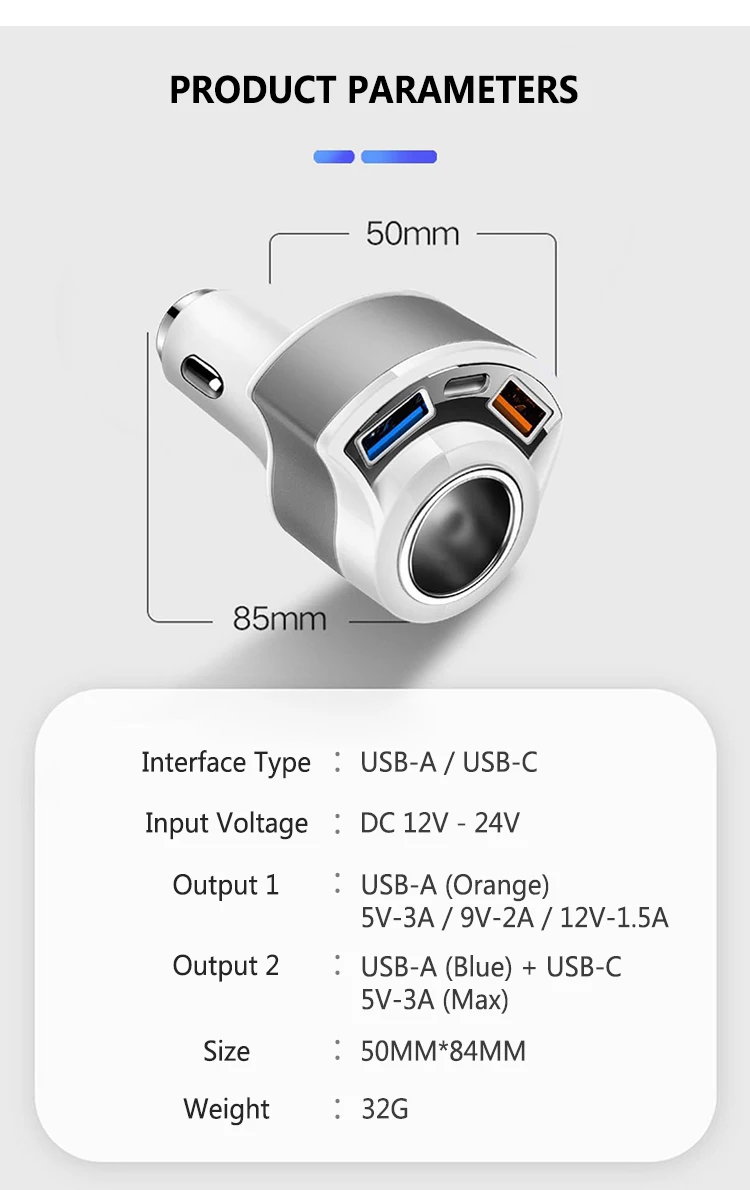 Product NameMetal 3 in 1 QC3.0 Quick Car Charger