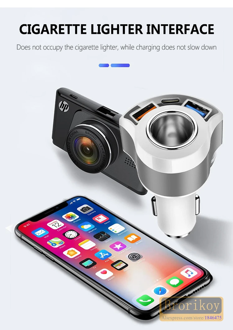 Автомобильное зарядное устройство с USB-портом для прикуривателя, быстрая зарядка 3,0