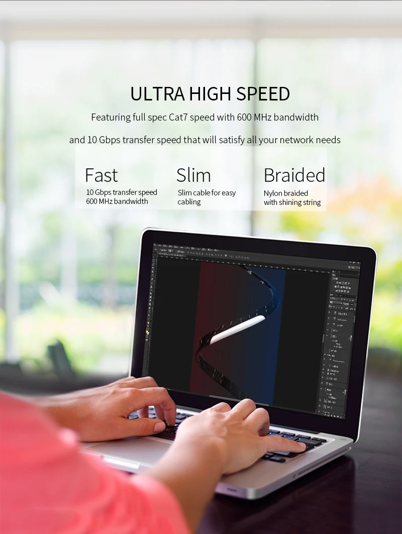 Кабель Ethernet CAT 7, 1м, 1,5м, 2м, 3м, плоский сетевой кабель RJ45, STP, кабель локальной сети