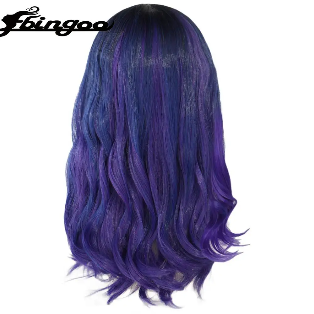 Парик для косплея Ebingoo из высокотемпературного волокна длинный волнистый синий Омбре фиолетовая синтетическая средняя часть для женского костюма для вечеринки
