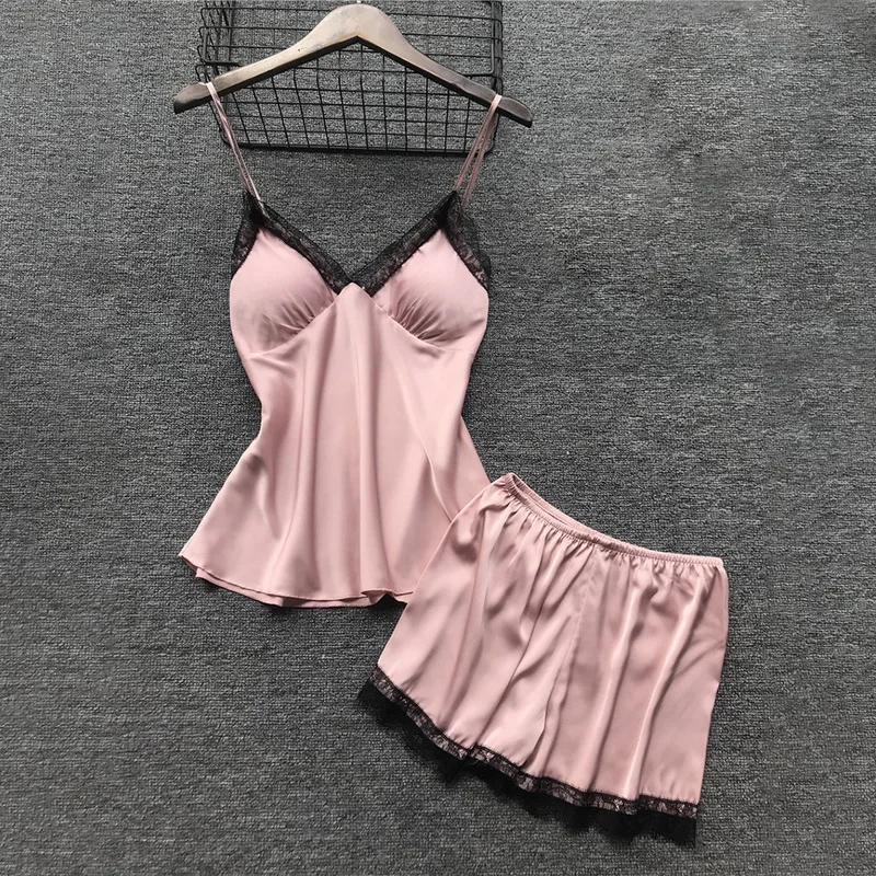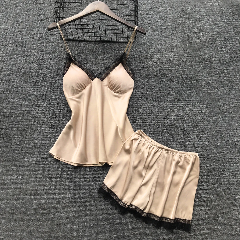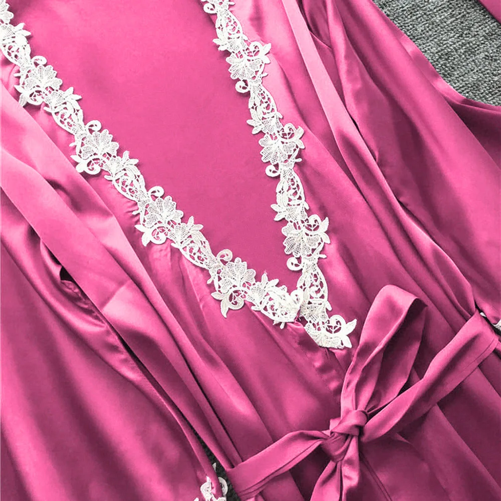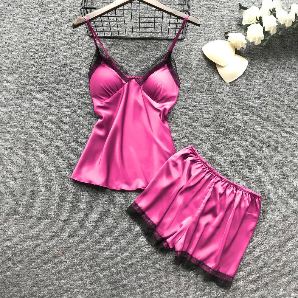 Пижамный комплект Женский из 5 предметов, Шелковый Атласный пижамный комплект, пикантная ночная рубашка с кружевными подушечками, одежда для сна, домашняя одежда 2020