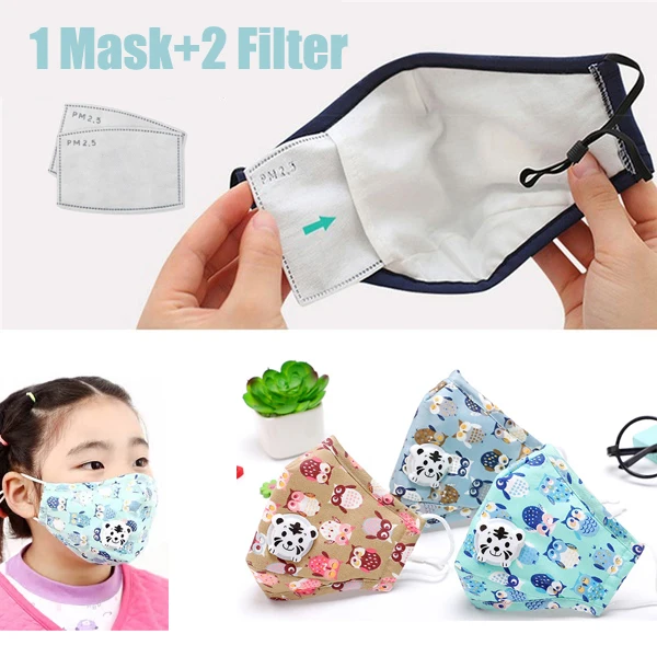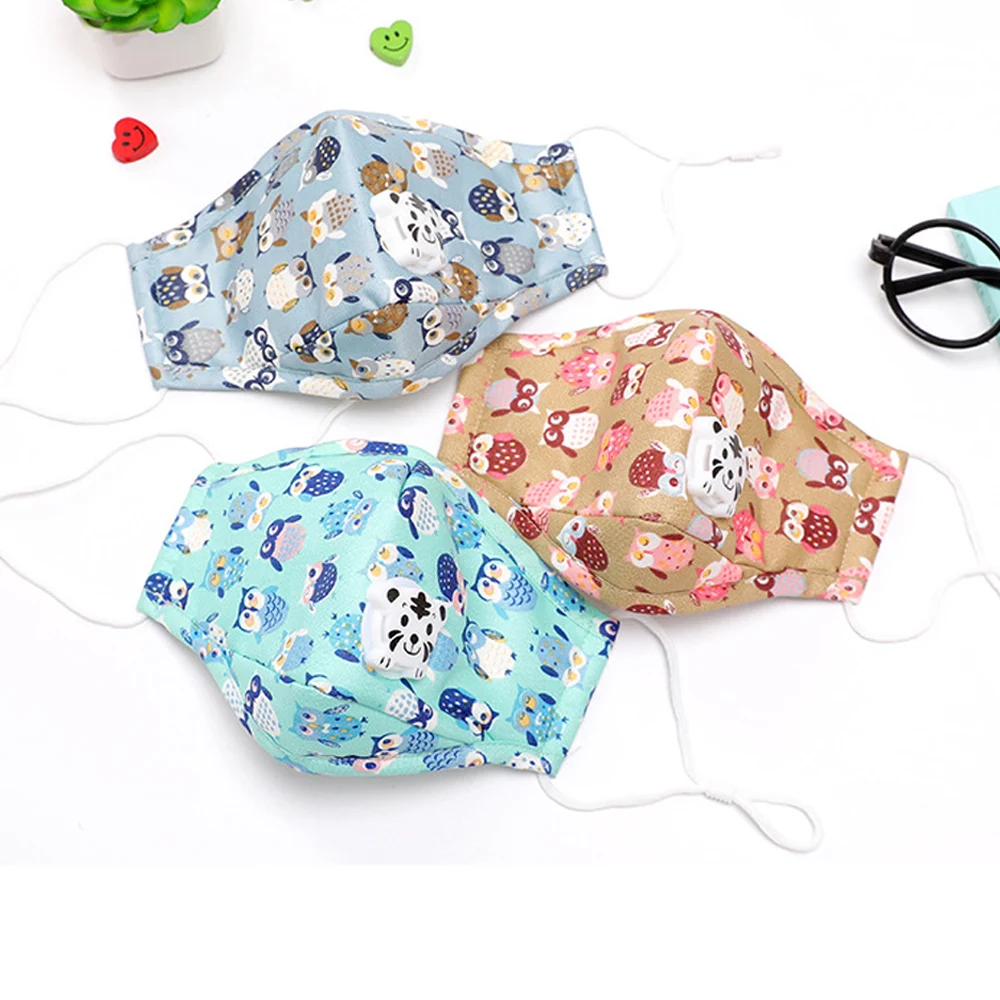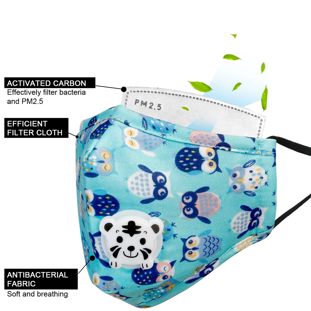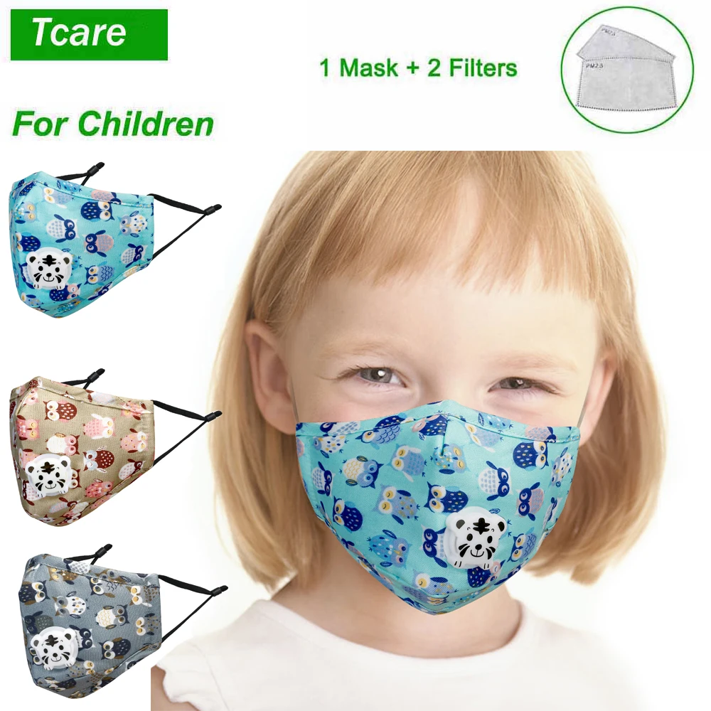 Детская маска для рта Tcare из чистого хлопка, лицевая маска PM2.5, респиратор с клапаном дыхания с мультяшными животными, подходит для детей
