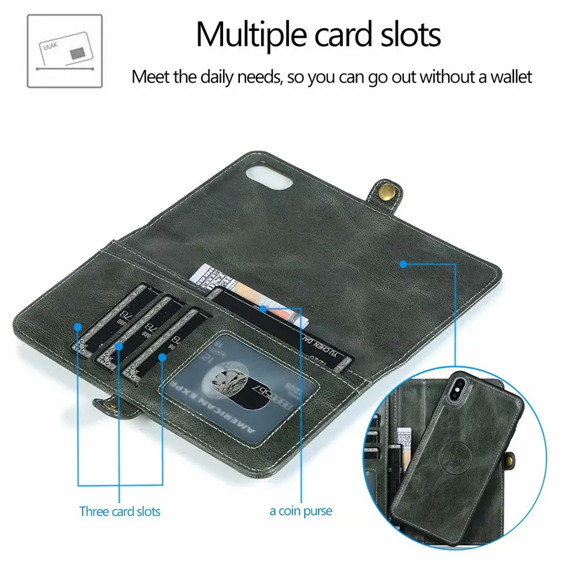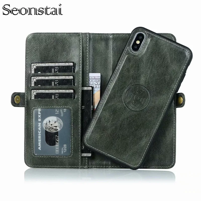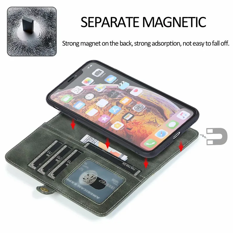 Магнитный съемный чехол-книжка для iPhone 11 Pro Max, 6s, 7, 8 Plus, XR, XS M, из искусственной кожи