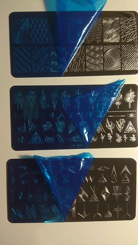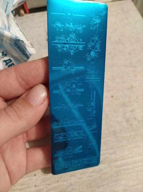 заказывала несколько пластин, все очень понравились, хорошо отпечатываются, были упакованы в отдельные пакетики и была синяя защитная пленка на пластинах (сняла сразу и не сфоткала ранее), доставка была долгая около 4 месяцев, не отслеживалась, думала не получу, продавец продлевал защиту, но в целом товарами довольна и рекомендую данные пластины