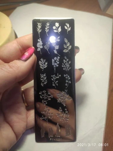 Заказ пришел довольно быстро. Все как на картинке, единственное - рисунки крупнее, чем показано. Ногти должны быть огромными, чтоб весь помещался. С другой стороны - для реверсивного стемпинга удобнее. При заказе рассчитывайте, что рисунок будет намного крупнее, чем кажется.