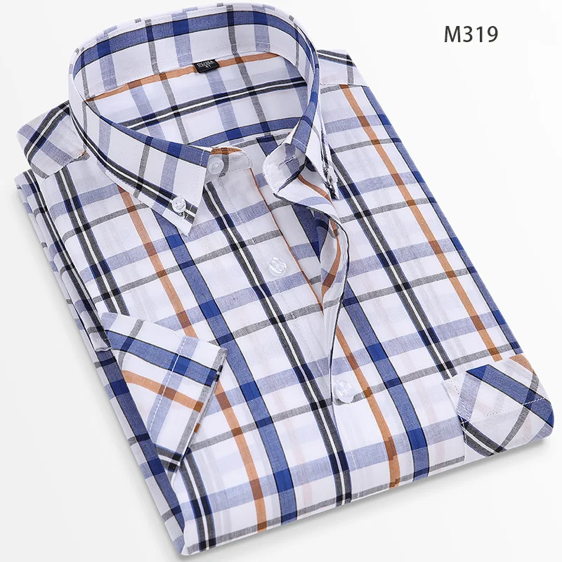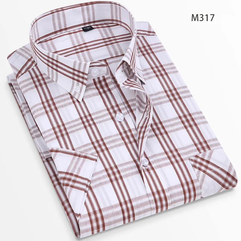 рубашка в клетку Мужская клетчатая рубашка, летняя, дышащая, с коротким рукавом, из 100% хлопка, обтягивающая, повседневная, много цветов