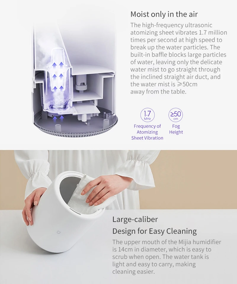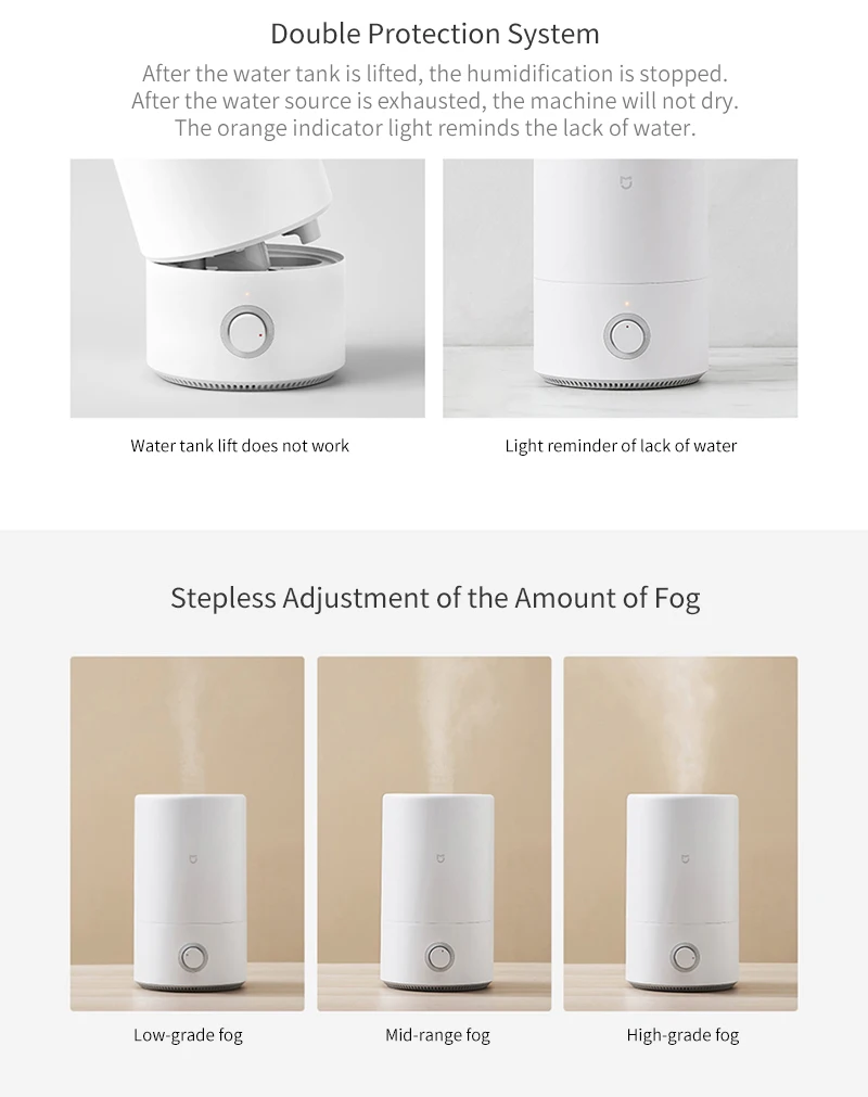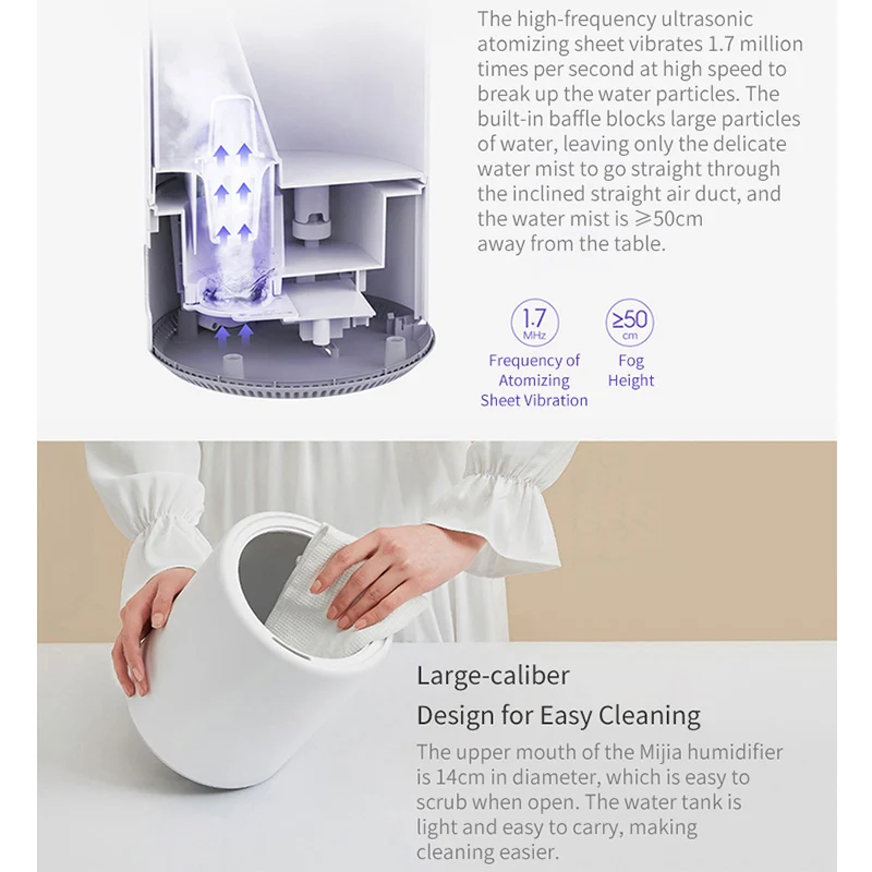Увлажнитель воздуха Mijia mjsq02lx 4L, серебристый, антибактериальный, 280 млч, распыление, низкий уровень шума, бесступенчатый увлажнитель