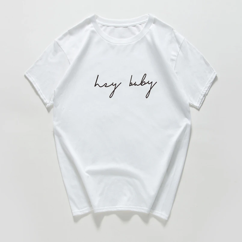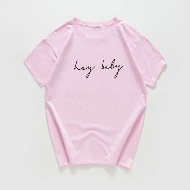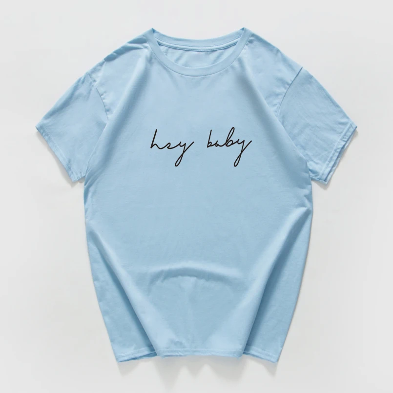 Забавная футболка hey baby с надписью, женские топы оверсайз в эстетике, Женская милая Корейская одежда, летняя крутая винтажная женская футболка, 2020
