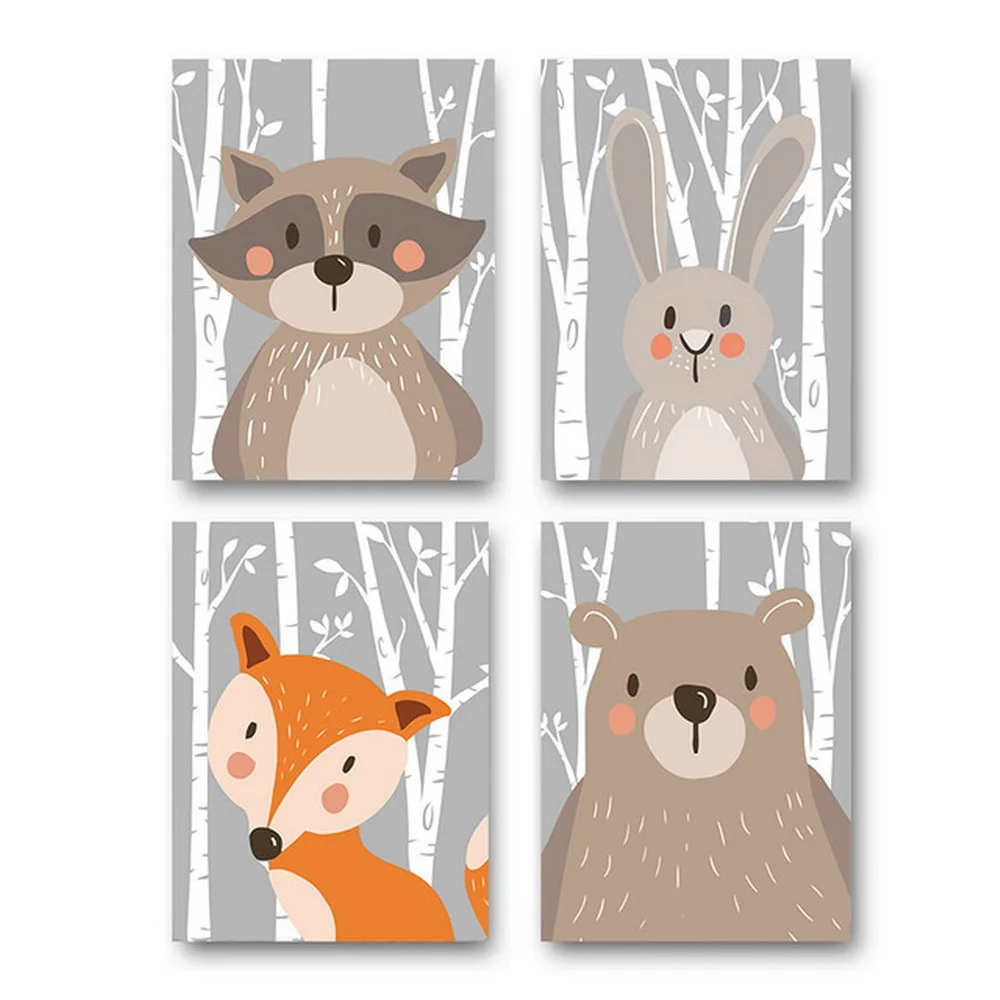 Мультяшный медведь олень лиса планшетофон для детской стены Искусст...