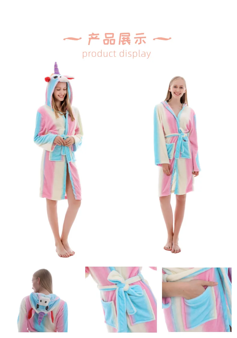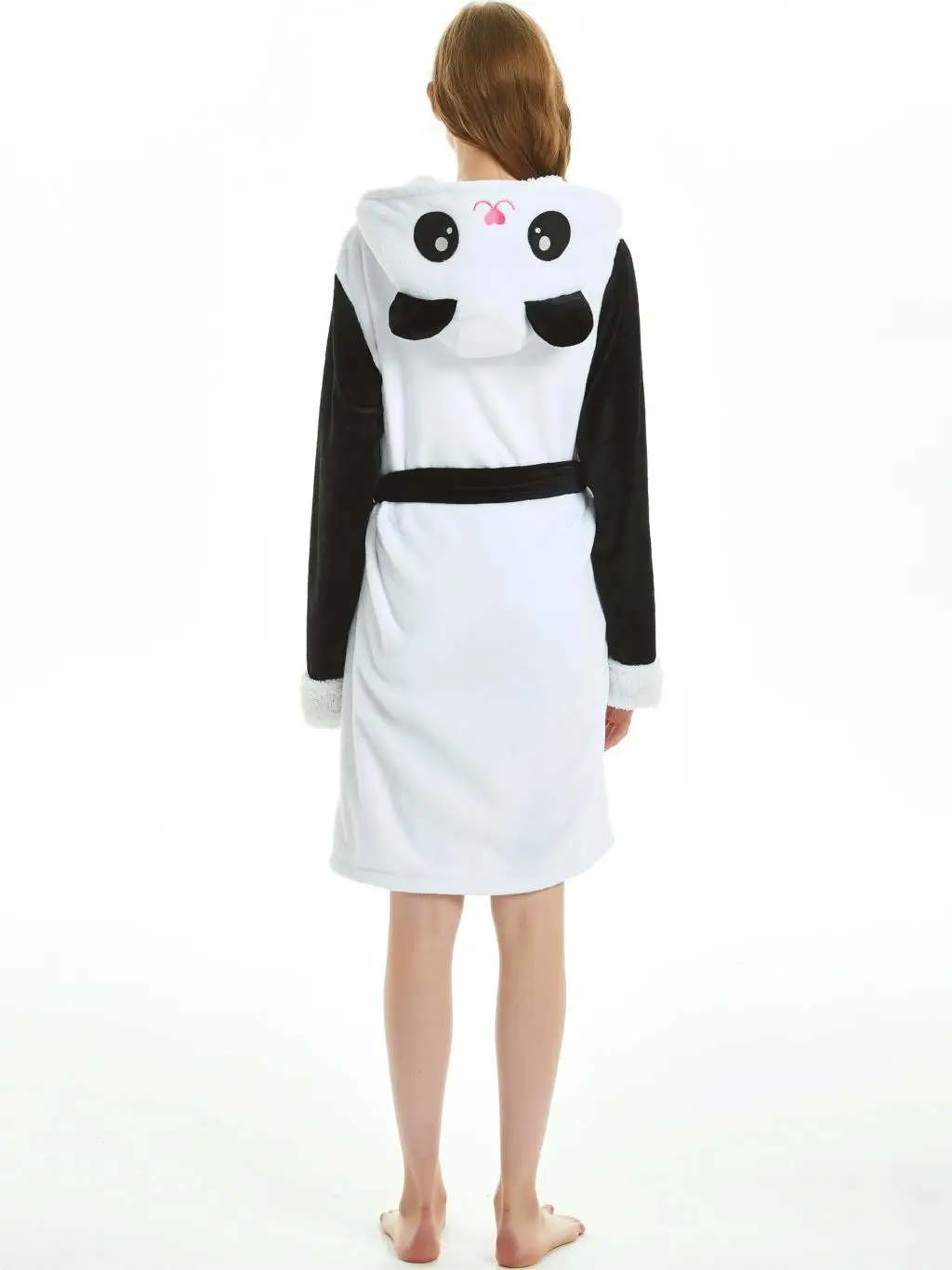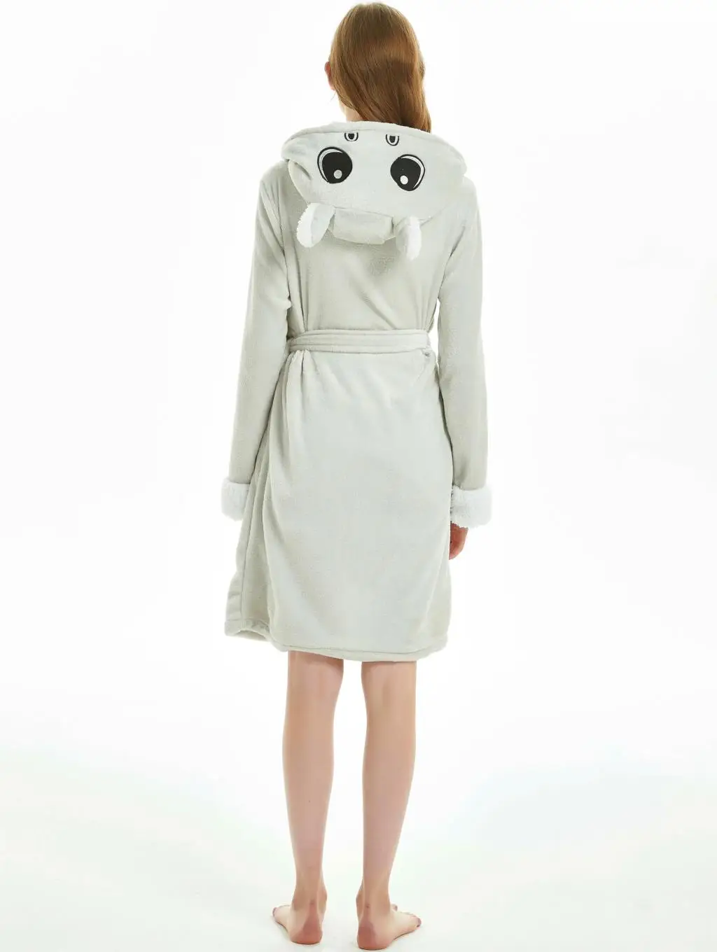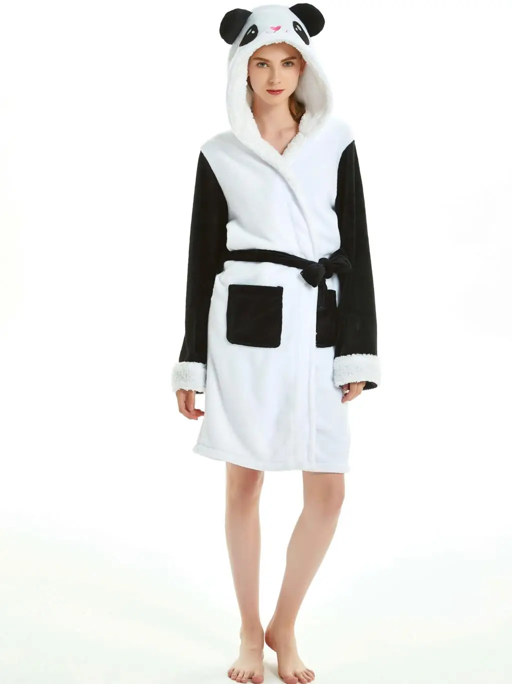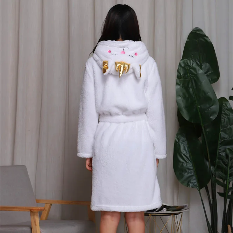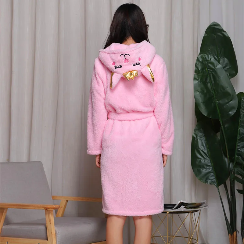 Халат-кимоно Женский с капюшоном, теплая Пижама с мультяшным принтом животного, одежда для сна, халаты, весна-осень