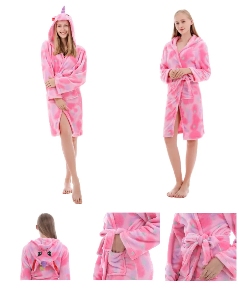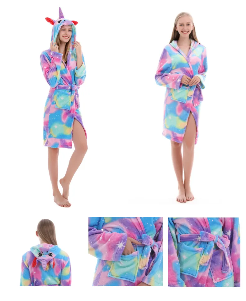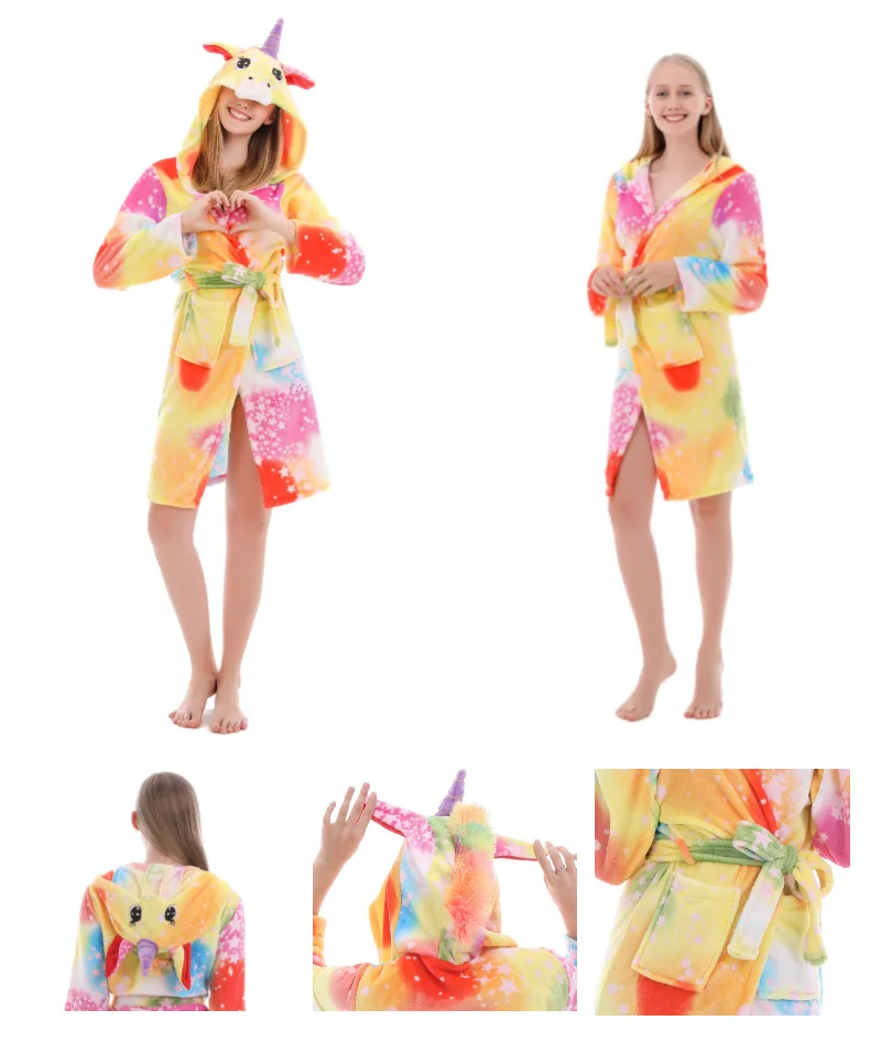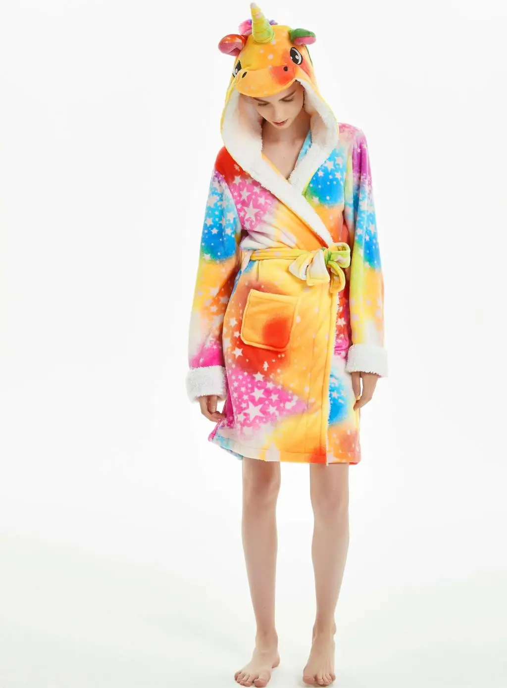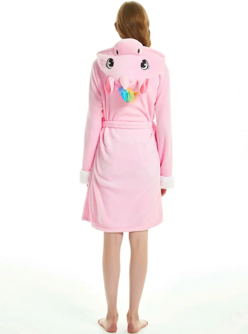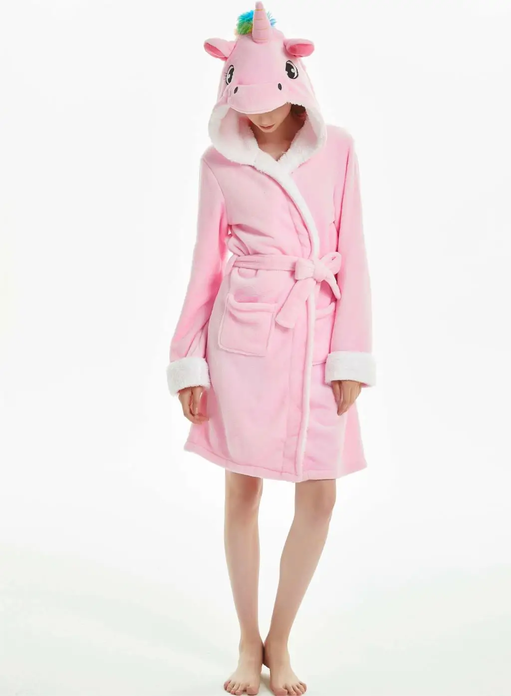 Халат-кимоно Женский с капюшоном, теплая Пижама с мультяшным принтом животного, одежда для сна, халаты, весна-осень