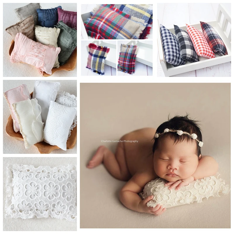 Детские реквизит для фотосессии заполненные кружевные тканевые подушки реквизит для фотосъемки новорожденных аксессуары из кружевной ткани детская клетчатая подушка в цветочек для студии