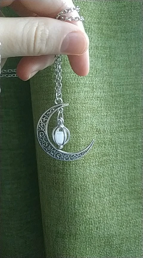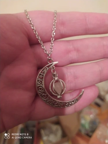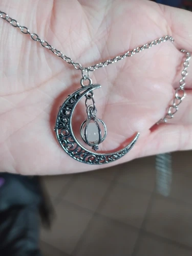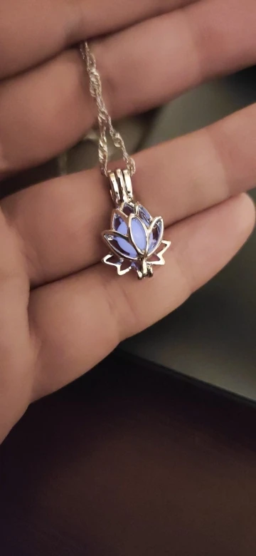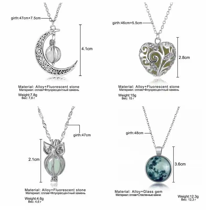 Заказ пришёл примерно за месяц. Но кулончик маленький (выглядит прям на 1.5см), и в темноте так, как показано - вообще не светится. Еле заметный слабый зеленоватый цвет. И цепочка разорвана