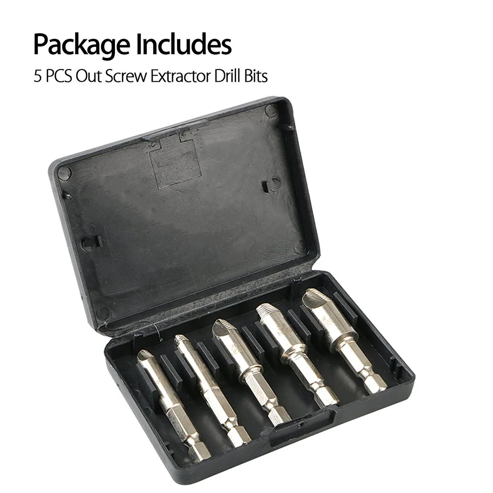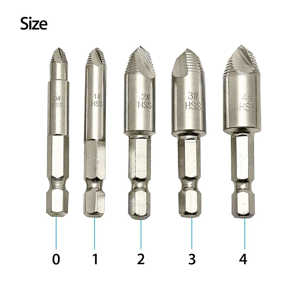 Hi-Spec 5 шт. комплект экстрактора сломанных винтов для удаления поврежденных болтов HSS набор сверл для металла