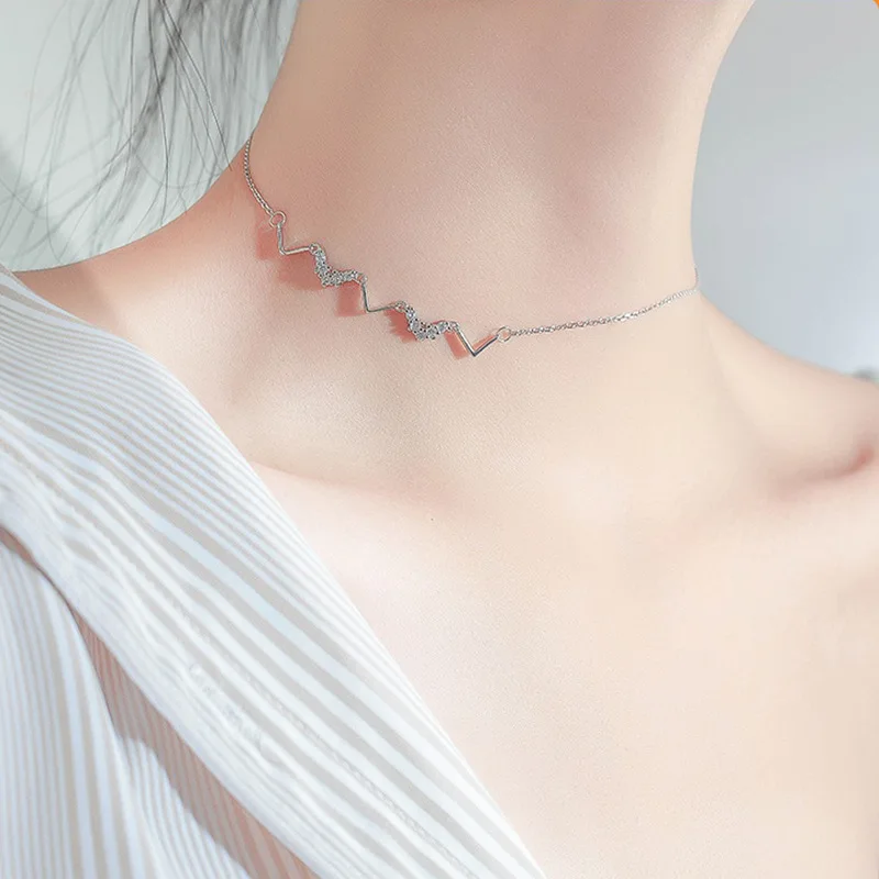 ANENJERY, простые, 925 пробы, серебряные, удачливые бусы, ожерелья для женщин, короткая цепочка, чокер, ожерелье, S-N554