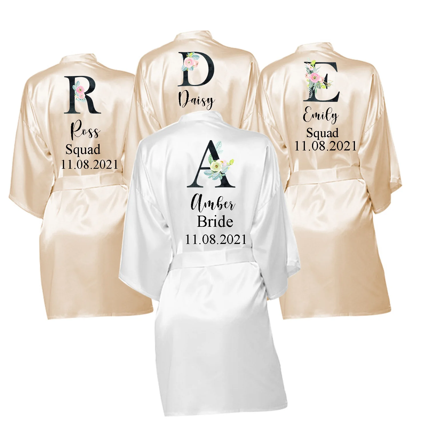 Свадебный Атласный халат, персонализированный Атласный халат с именем на заказ, пижамы, свадебные подарки подружкам невесты, вечерние Халаты для невесты