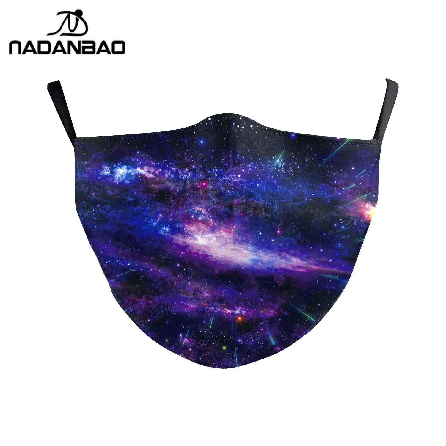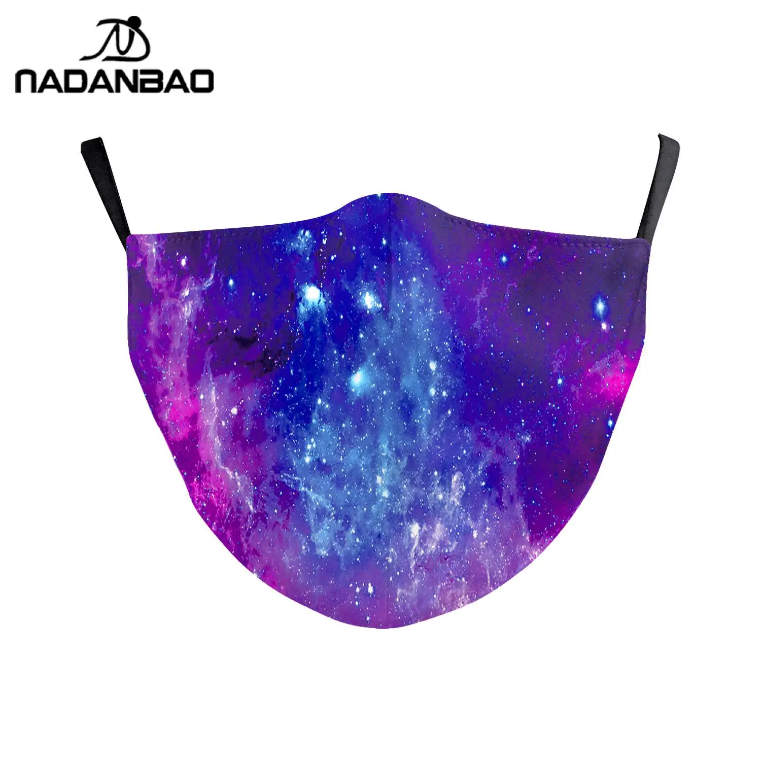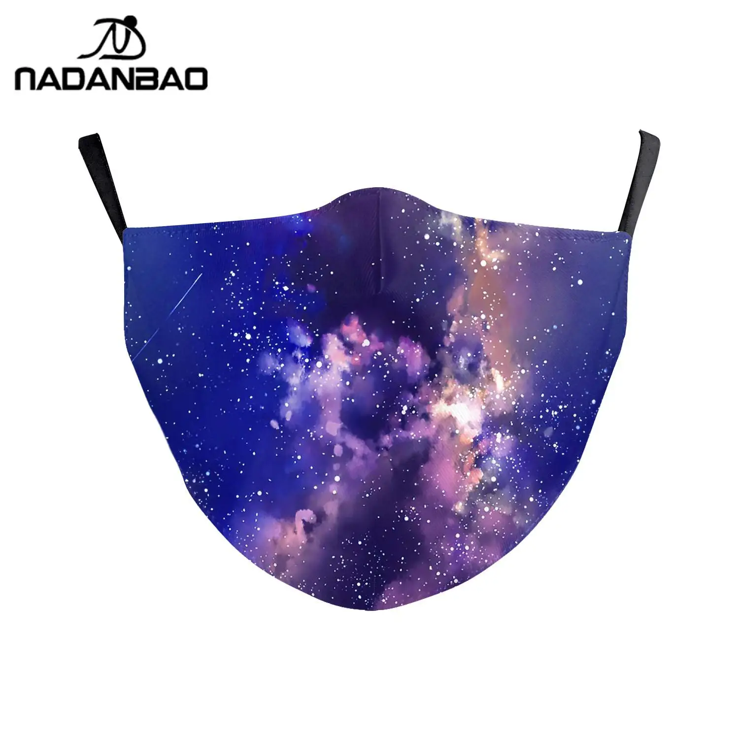 Цветная Синяя Маска для лица с принтом звездного неба NADANBAO, маска из моющейся ткани для взрослых с галактикой, многоразовая Женская модная маска для лица