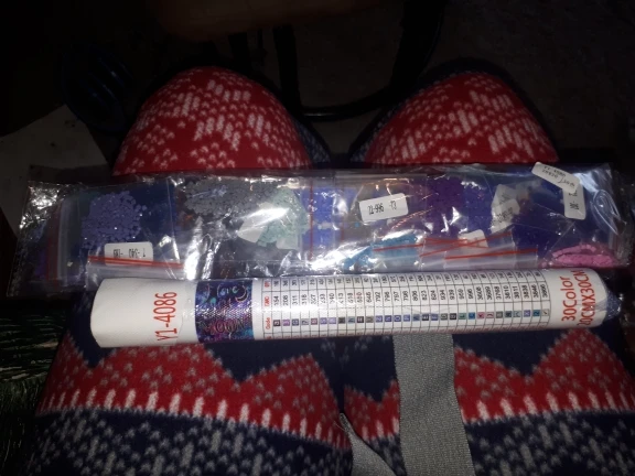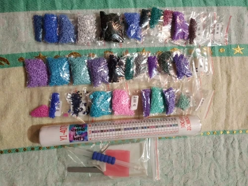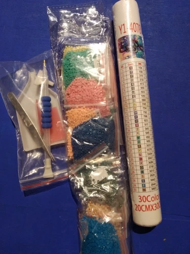Я прибыла в комбинированной доставке нескольких товаров. В основном все в порядке, холст выглядит хорошо, даже если морщинистая пелина, ничего не важно. Есть все мешки цветов, необходимых для завершения его, и я надеюсь, что их достаточно. Доволен покупкой