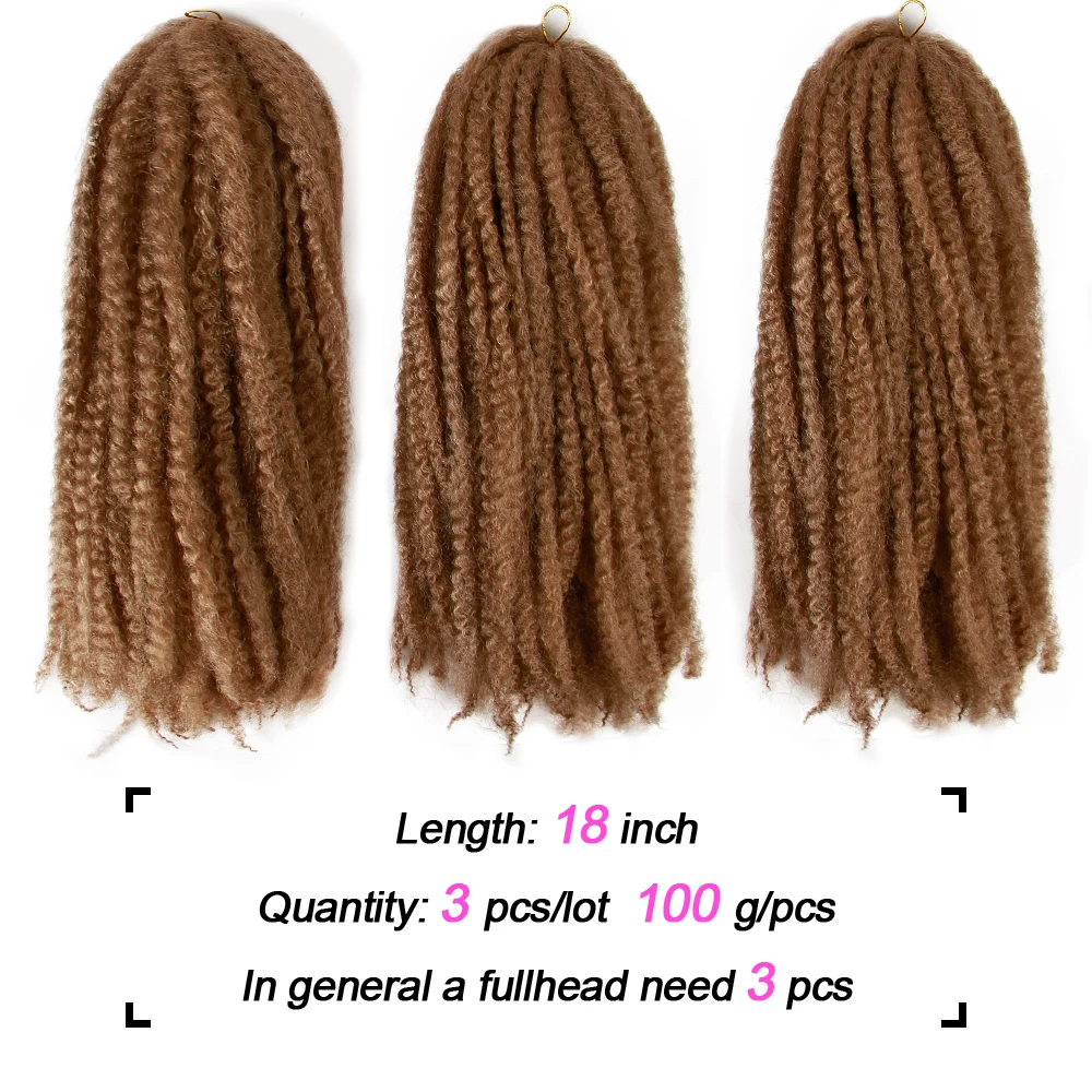 Оникс 18 дюймов марли вязание крючком волосы чистый цвет афро курчавые Синтетические плетение волос крючком косы удлинитель волос для женщин