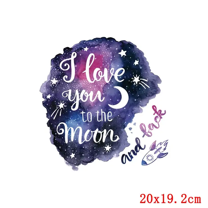 Космические термо-наклейки на одежду, черная футболка, аппликация, наклейки, железо на передачу, для одежды, мультяшный патч, значок, сделай сам
