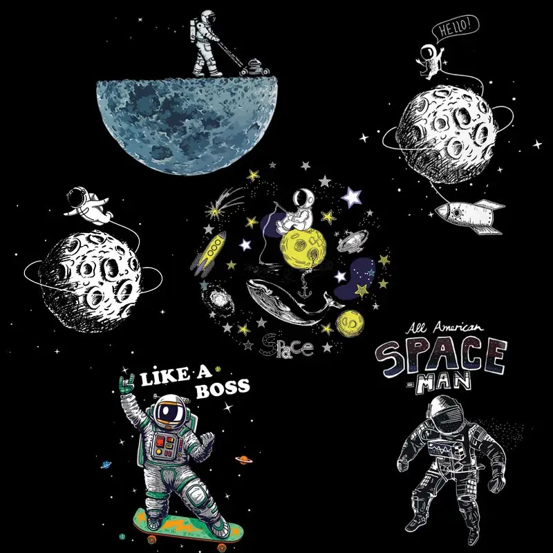Астронавт НЛО термоперенос утюгом печатные наклейки для ткани косми...