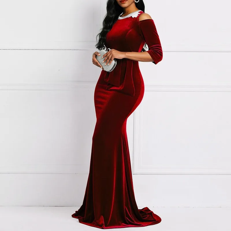 Зимнее женское платье 2022, бархатное модное красное платье русалки...