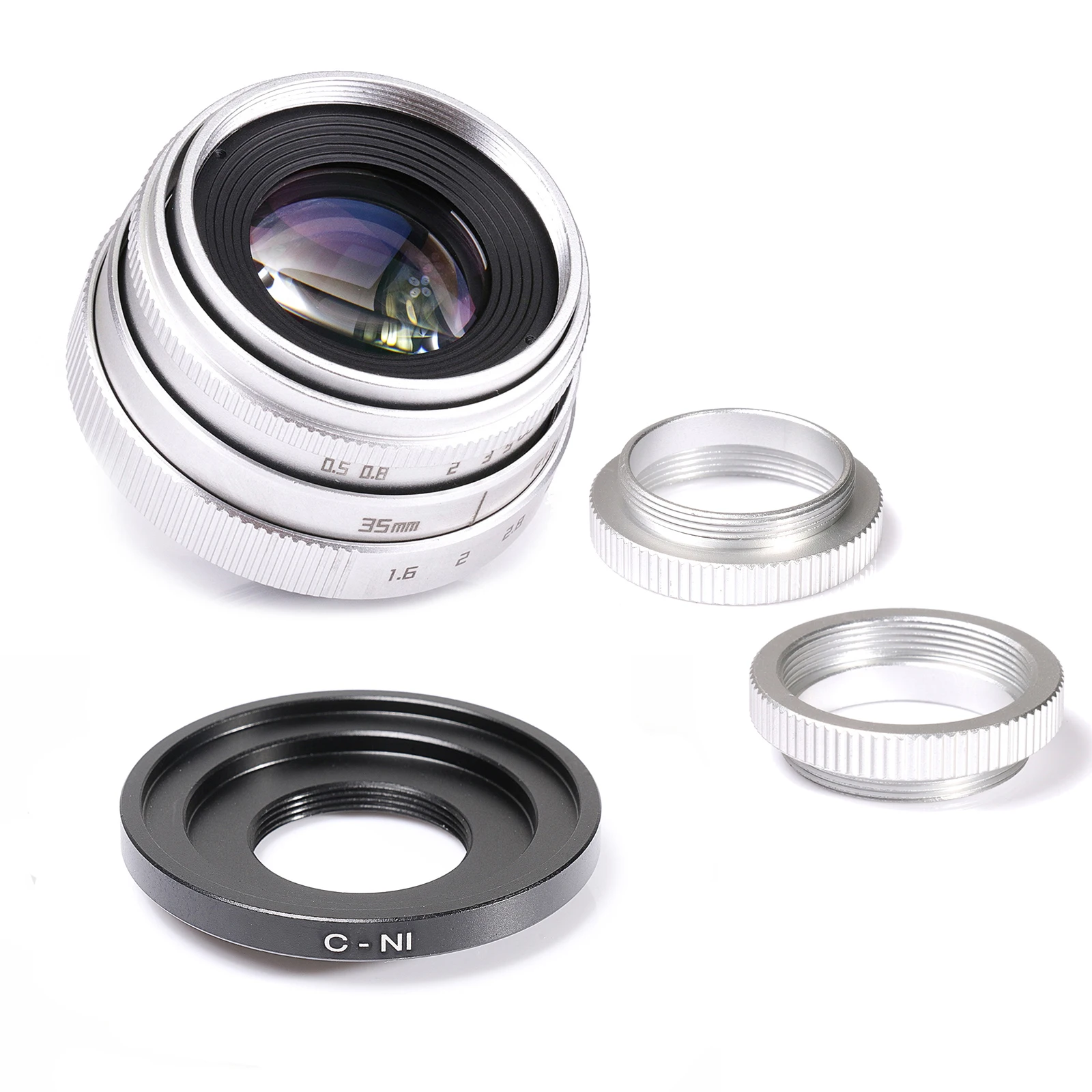 Серебристый мини-объектив 35 мм f1,6 AP-C CCTV + переходное кольцо + 2 макрокольца для беззеркальной камеры NIKON1 J1J2J3J4J5