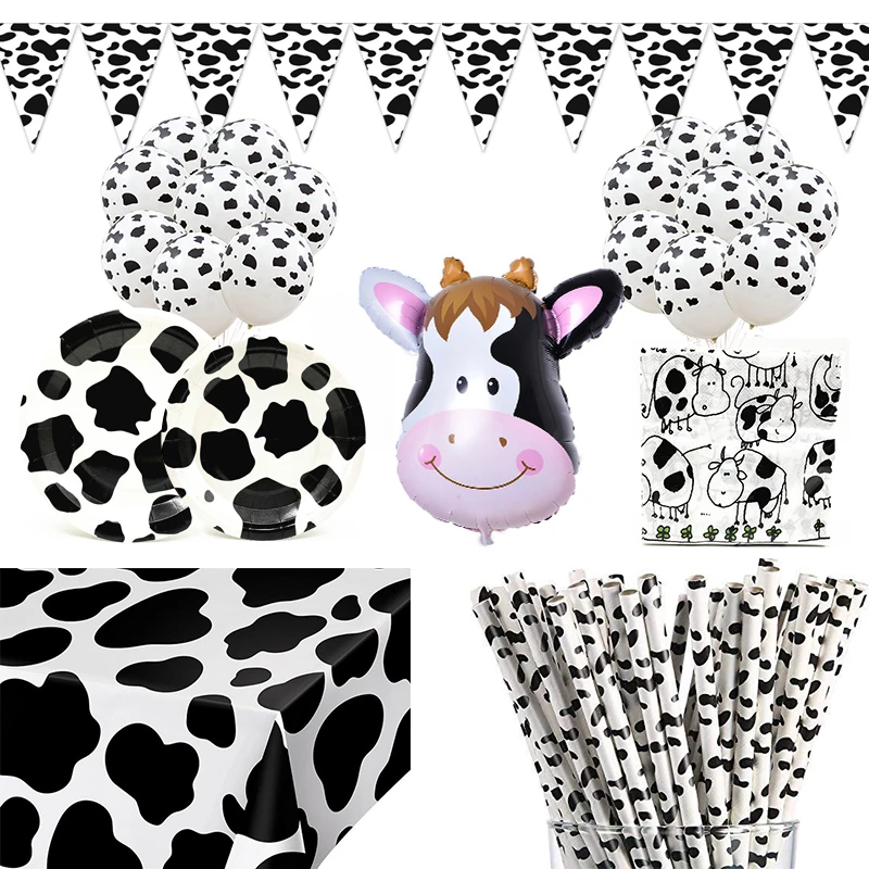 Новинка, набор одноразовой посуды для вечеринки в виде коров, черно...