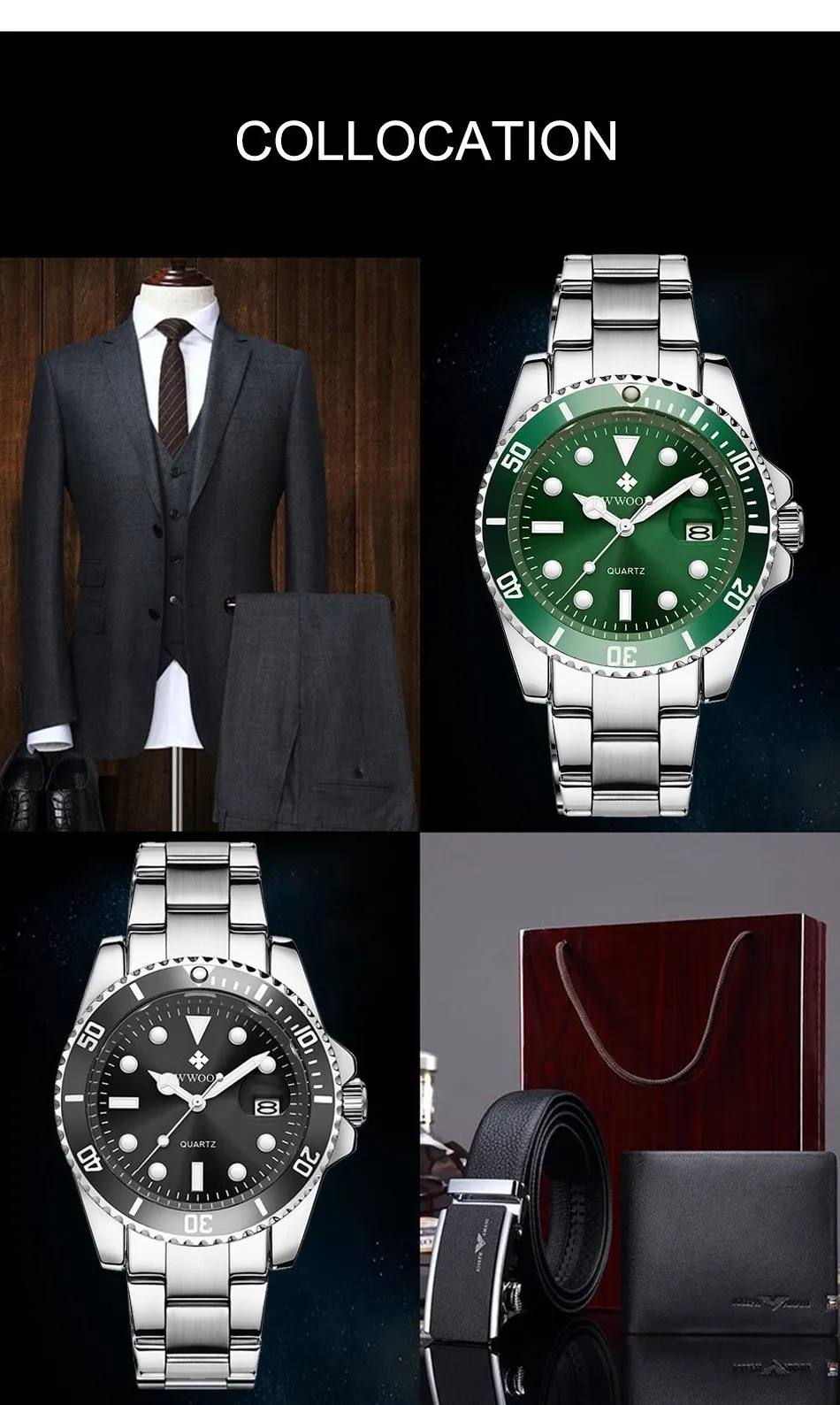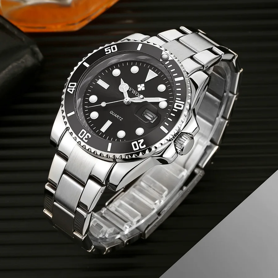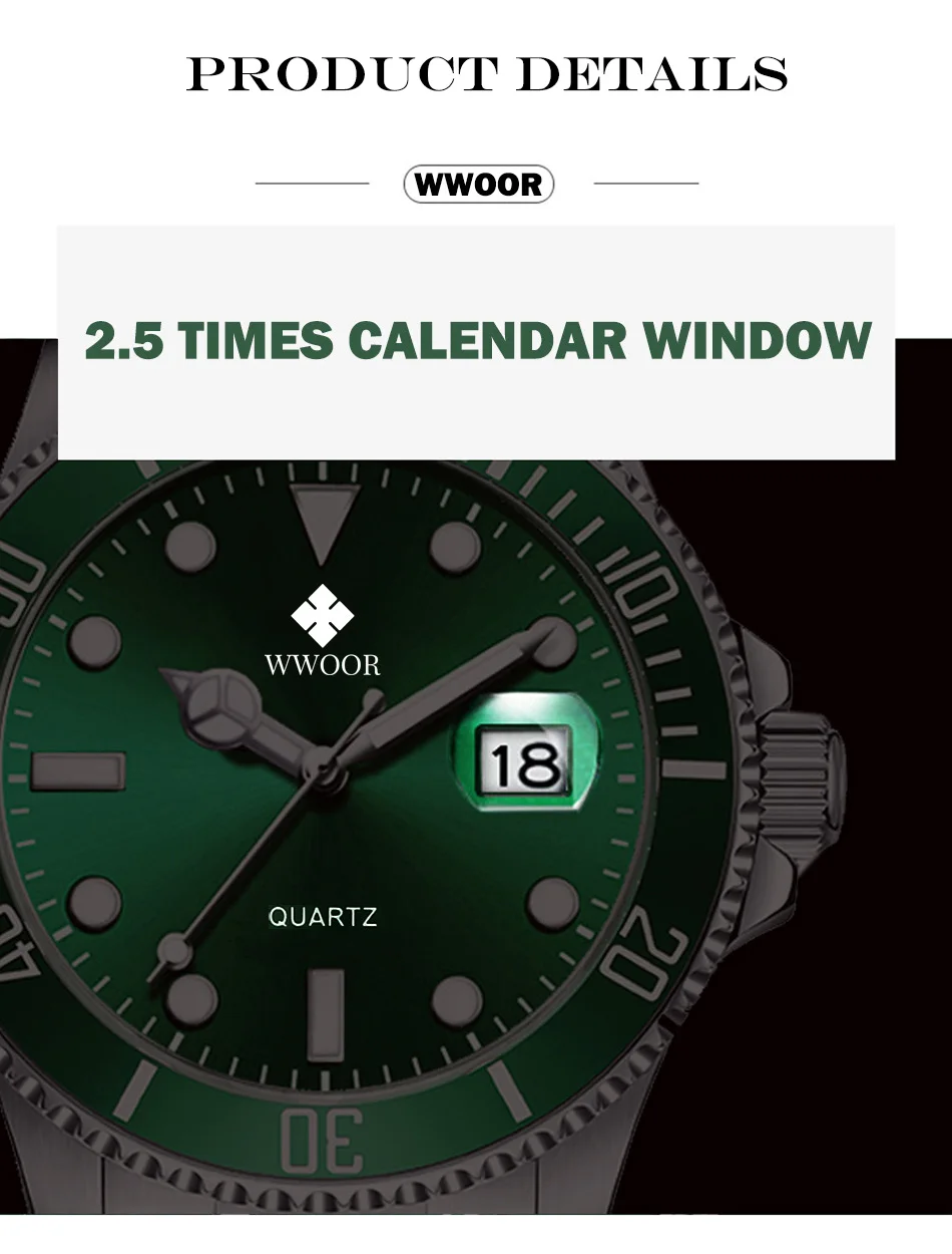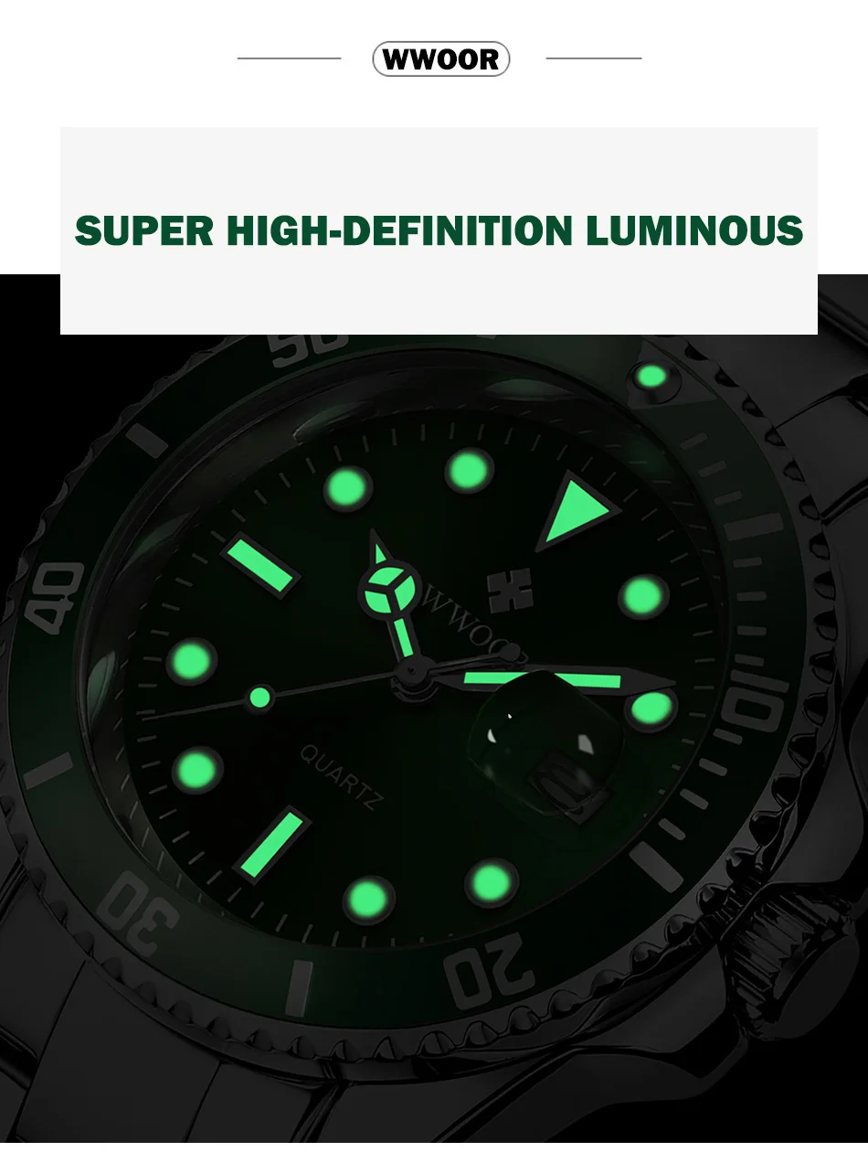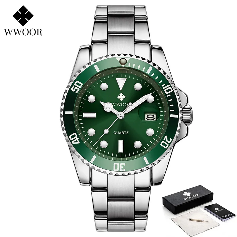Мужские водонепроницаемые кварцевые часы WWOOR, стальные часы с автоматической датой, спортивные наручные часы для дайвинга, 2021