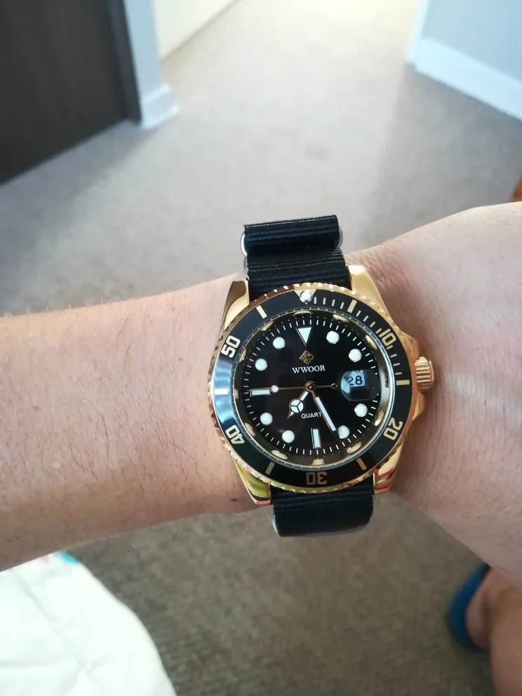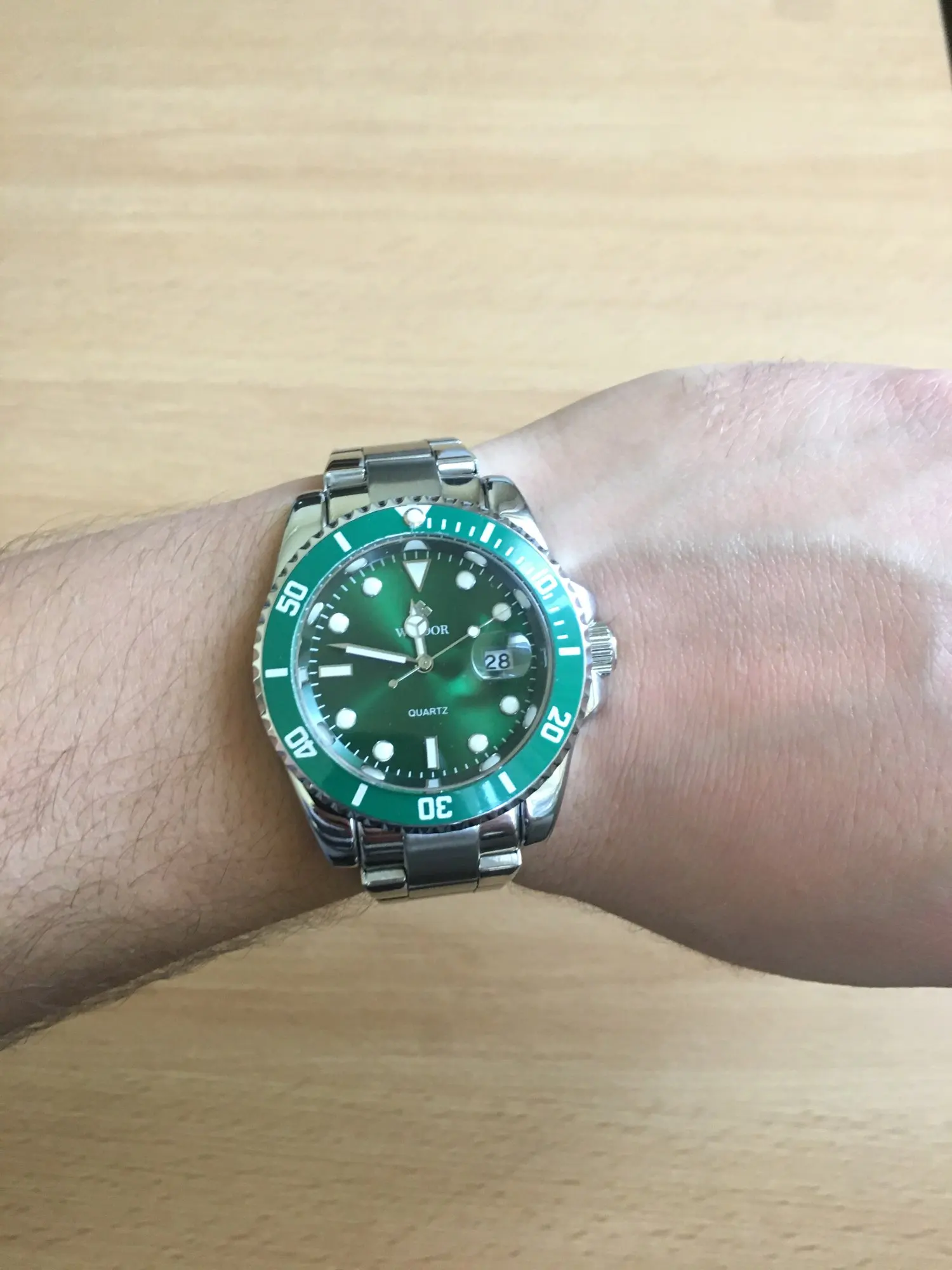 Товар пришел за 6 дней выглядят круто, ремешок из приятного материала руку не царапает. цвет кольца более матовый чем цвет циферблата, но в глаза не сильно бросается, есть один минус (на фото видно) циферблат немного кривой.