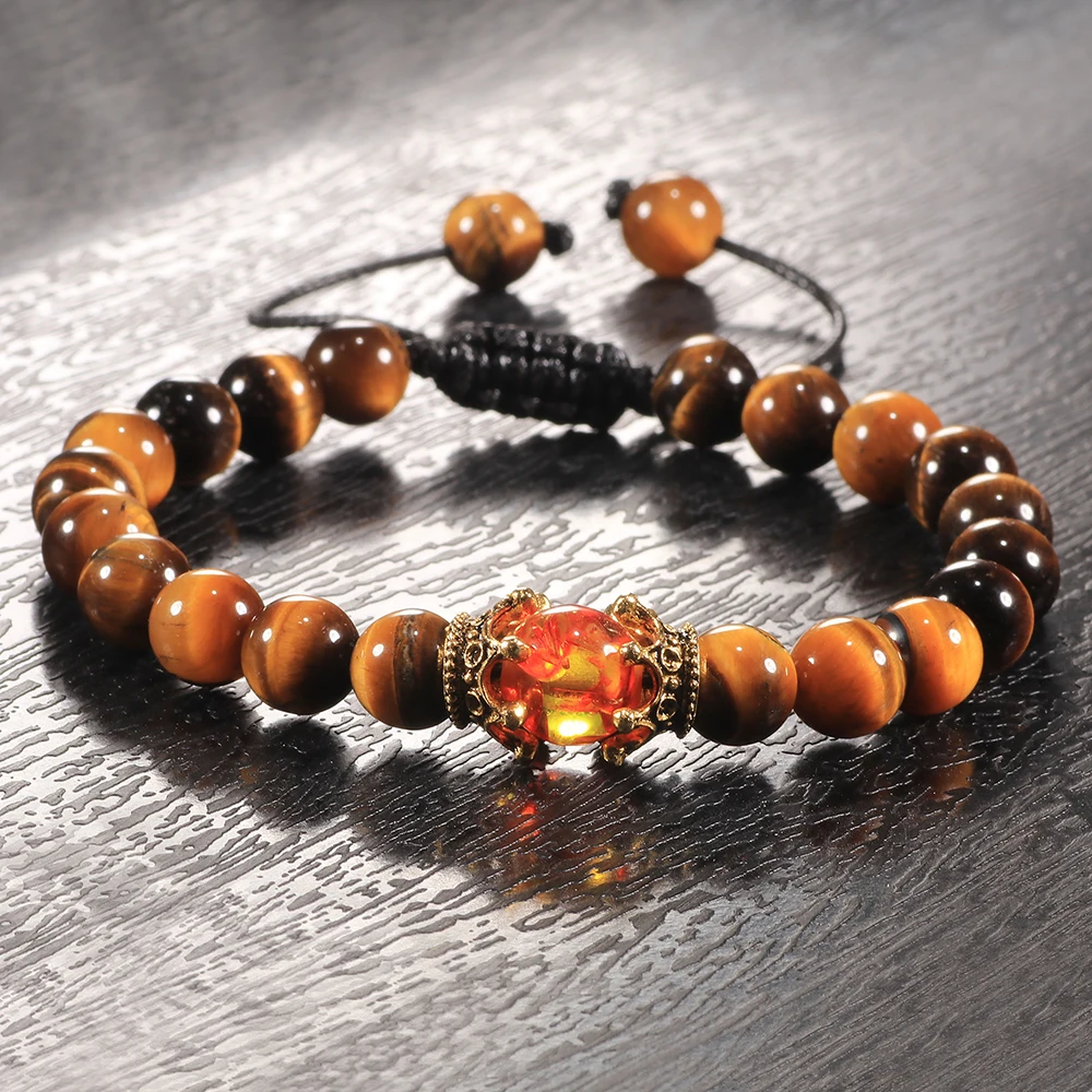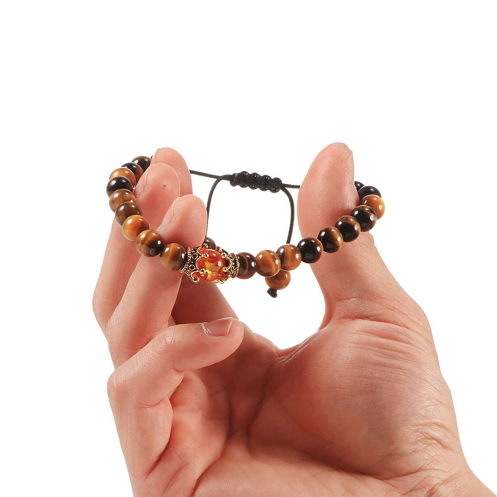 Браслеты с бусинами тигровый глаз для мужчин и женщин, регулируемый браслет на запястье, плетеный шнур, лечебный баланс, йога кулон, Будда из натурального камня