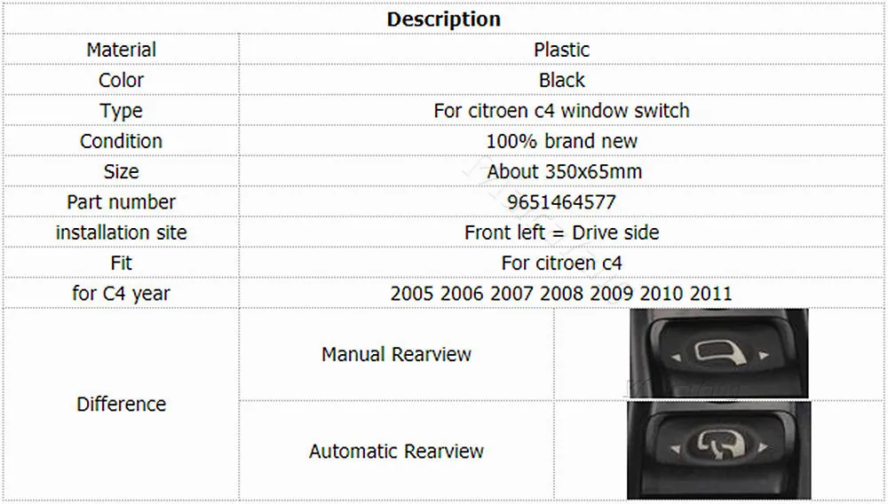 Переключатель окна автомобиля для Citroen C4, переключатель управления электрическим питанием с кнопками зеркала заднего вида 9651464577