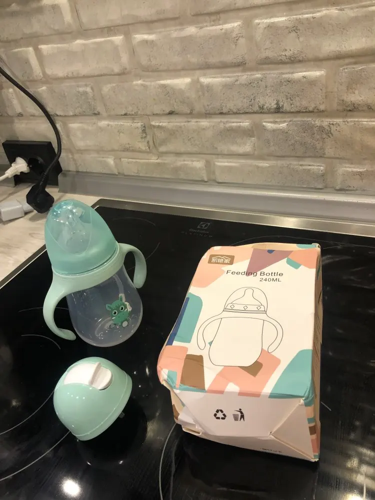 Бутылочка пришла вовремя , коробка помята, но все целое. Качество отличное, запаха нет, пластик и силикон хорошего качества. Ребенок (7 мес) из рук не впускает))) пьёт чай с бубликами) заказывало со сменным колпачком с трубочкой. Рекомендую товар и продавца, отправили в день оплаты, с продавцом не общалась.