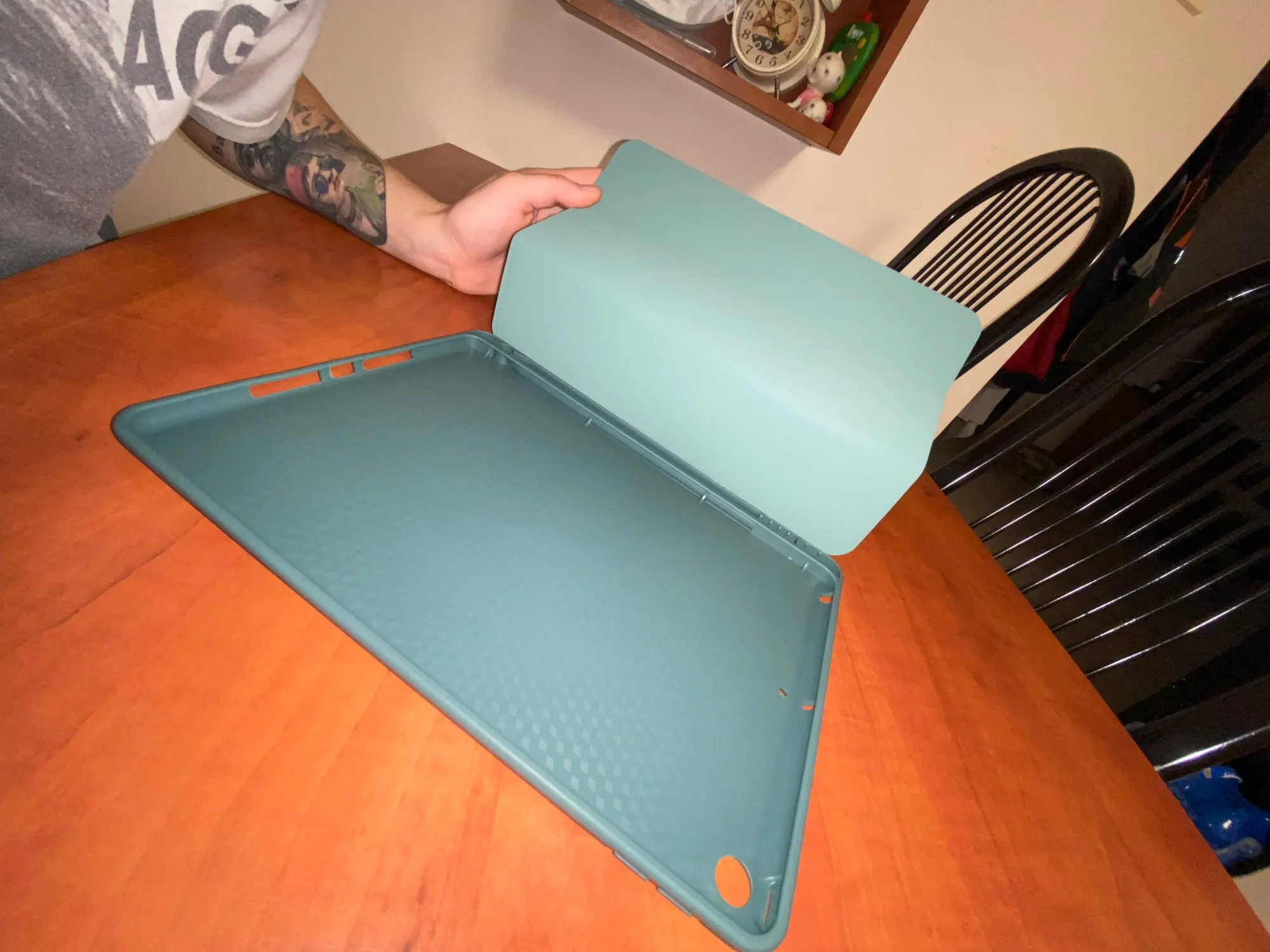 Чехол очень приятный на ощупь. Красивого сложного зелёного цвета. Сидит плотно и планшет и карандаш. Подставка первые дни плохо сворачивалась, но со временем разработалась и стала лучше фиксироваться в собранном виде. Рекомендую!