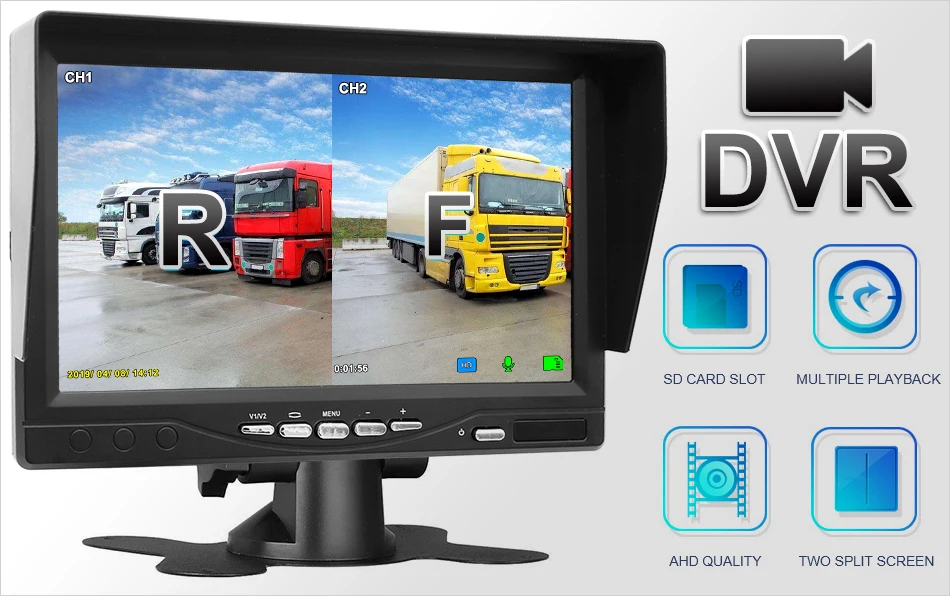 Видеорегистратор GreenYi 1280*720 AHD, камера заднего вида для грузовиков с функцией ночного видения, монитор AHD 7 дюймов с поддержкой SD-карты