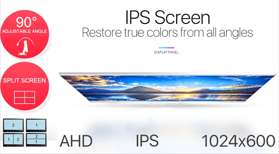 Разрешение: 1024*600Пиксель записи монитора: (1 камера = 1920x1080) (2 камеры = 1080P + 720P) (наша камера)Экран IPS: ПоддержкаЯркость экрана: 500 кд/м2Контраст: 300:1Мощность Напряжение: 12-30 вПоддержка циклической записиРазмер экрана: 7 дюймов ДисплейПотребляемая мощность: <= 6 ВтВидео вход: V1/V2, автоматический переключательПоддержка AHD камеры и обычной камеры.Изображение ночного видения: Автоматический Контроль усиления, автоматический баланс белого, автоматическая компенсация на задний светильник.Посылка включает Пульт дистанционного управления.Этот монитор поддерживает отображение зеркального изображения.Вы можете изменить изображение заднего вида, отображаемое камерой заднего вида, на изображение переднего вида.Поддерживает одновременное отображение двух экранов камеры.