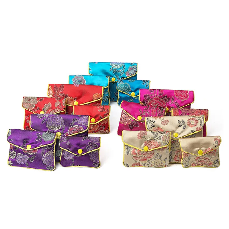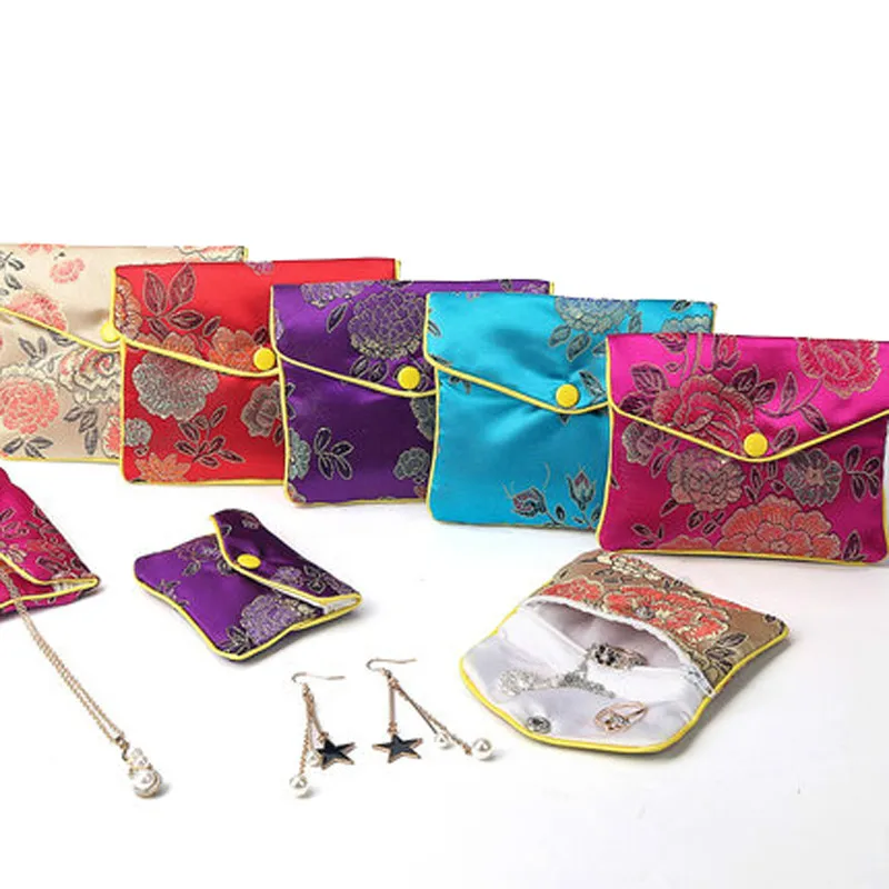Китайская парча ручной работы шелковая вышивка мягкая молния маленькая Подарочная сумка для ювелирных изделий Сумка Для Хранения Чехол атласный кошелек для монет