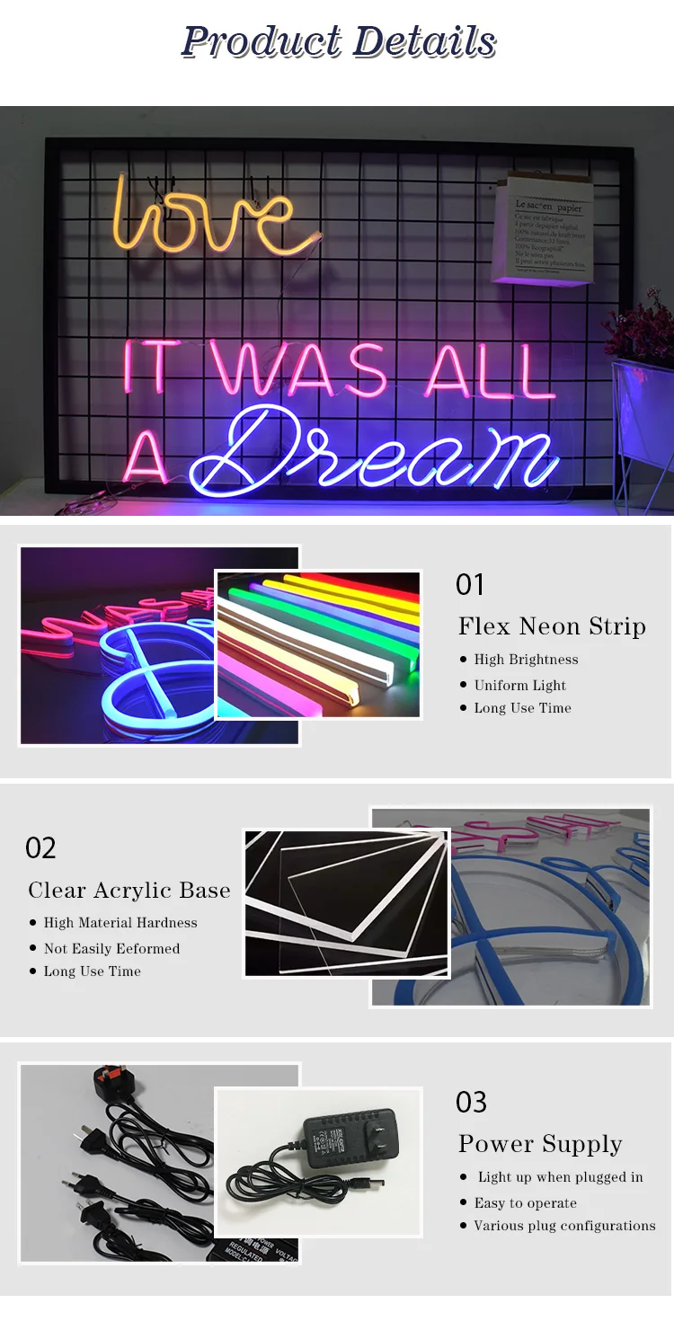 1. Акрил: обладает хорошей прочностью, светильник весом, долговечностью, не легко повредить, прозрачные материалы делают неоновый светильник s более красивым