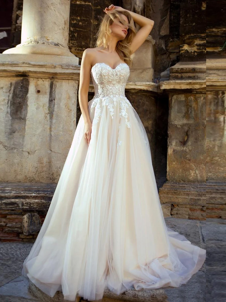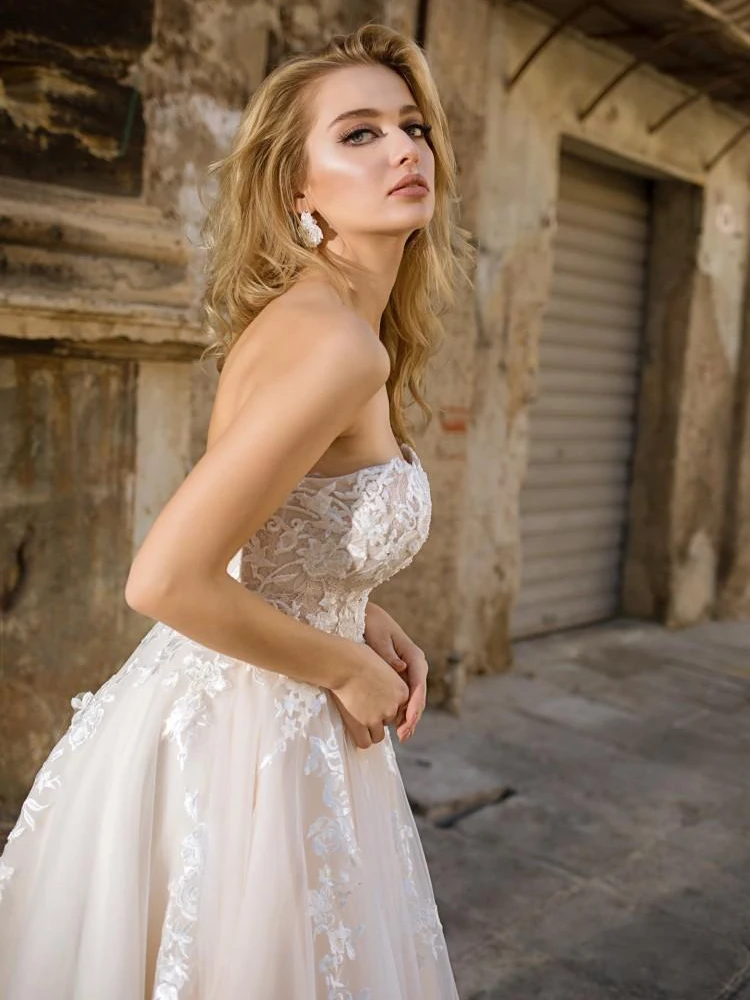 Свадебные платья LORIE без бретелек, кружевные атласные, без рукаво...