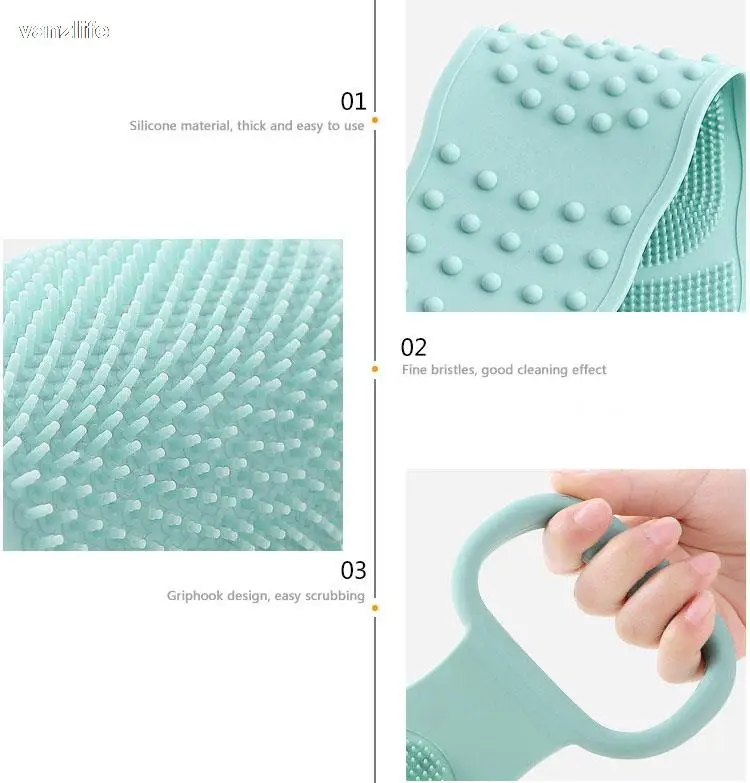 Vanzlife бытовой удлиненный силиконовый банный летучая мышь для детей не повреждает dorsum Чистящая двухсторонняя задняя прочная очистка артефакт