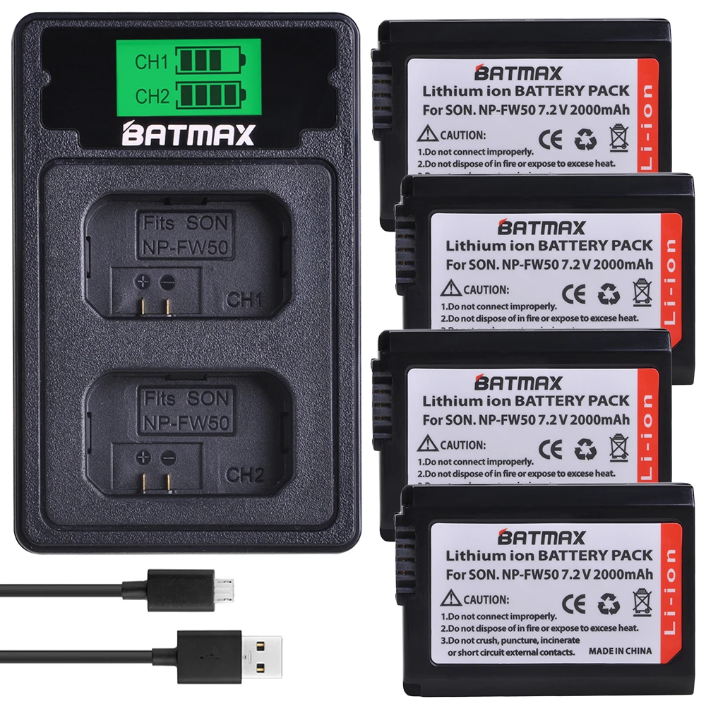 4 шт., 2000 мАч, аккумулятор NP FW50 с ЖК-дисплеем, встроенный USB, двойное зарядное устройство для Sony Alpha a6500, a6300, 7R, a7R, a7R, II, NP-FW50, с функцией зарядки и зарядки