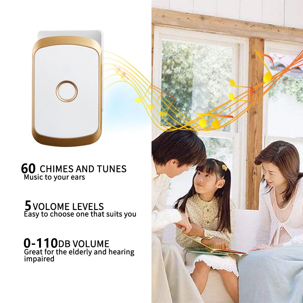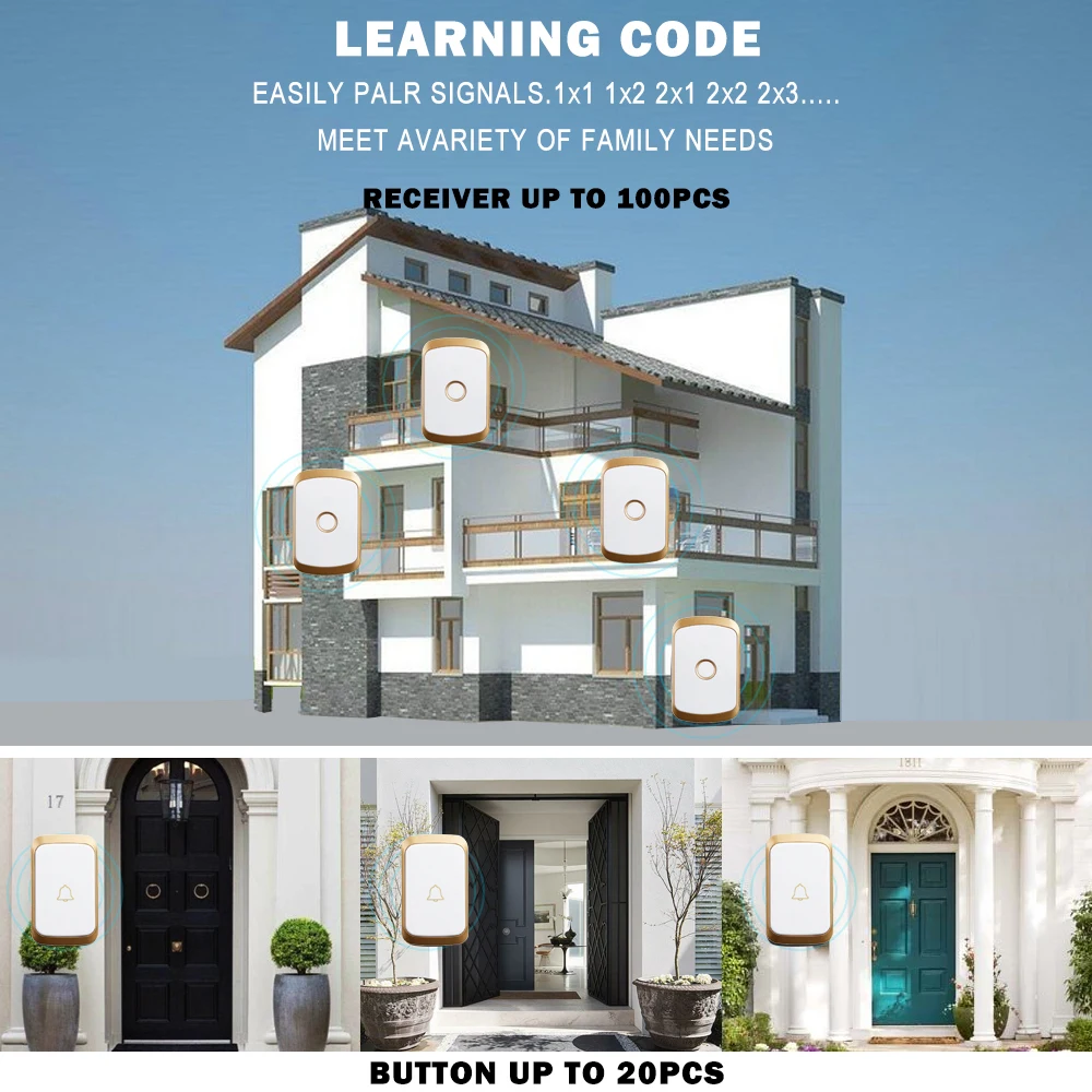 Беспроводной дверной звонок WEMEDA, водонепроницаемый, 300 м, 1, 2 кнопки, 1, 2, 3 приемника, 60 звонков, 5 громкости, 0-дБ, вилка стандарта США, ЕС, Великобритании