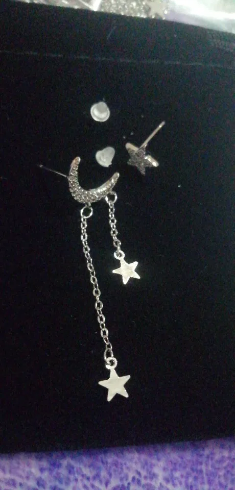 шли долго как обычно. в жизни выглядят немного иначе, на сережке с полумесяцем не 3 звёздочки(как заявлено на фото продавца), а 2, также она была слегка согнута, но я легко выпрямила ее. в подарок продавец положил мешочек для украшений, спасибо. я покупала со скидкой, честно говоря, не помню за сколько, но больше 150 рублей бы не отдала. понятно, что со временем краска слезет, дополню отзыв, когда это произойдет, чтобы вы знали сколько времени они выглядят хорошо.