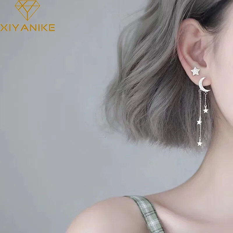 Серьги XIYANIKE в виде Луны с серебряным покрытием, очаровательные женские Асимметричные ювелирные изделия, новые модные элегантные аксессуары для вечеринок, подарок